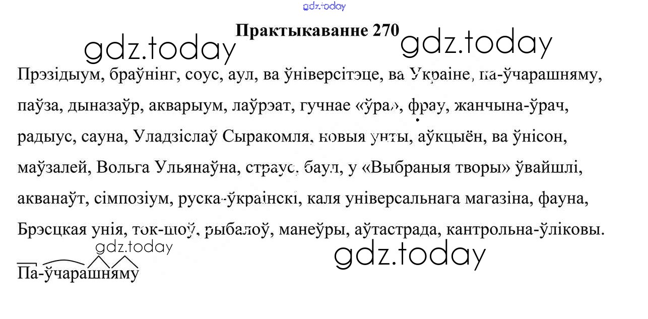 На страницах сайта gdz.today вы найдете учебный и вспомогательный материал, направленный на улучшения знаний школьной программы. ГДЗ - онлайн мир знаний Рашальнік да практыкаванняў 270 Учебнику по Белорусскому языку для 9 класса Валочка, Васюковіч Национальный институт образования 2019