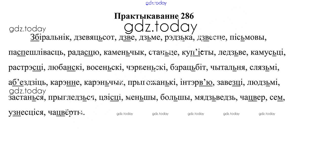 На страницах сайта gdz.today вы найдете учебный и вспомогательный материал, направленный на улучшения знаний школьной программы. ГДЗ - онлайн мир знаний Рашальнік да практыкаванняў 286 Учебнику по Белорусскому языку для 9 класса Валочка, Васюковіч Национальный институт образования 2019