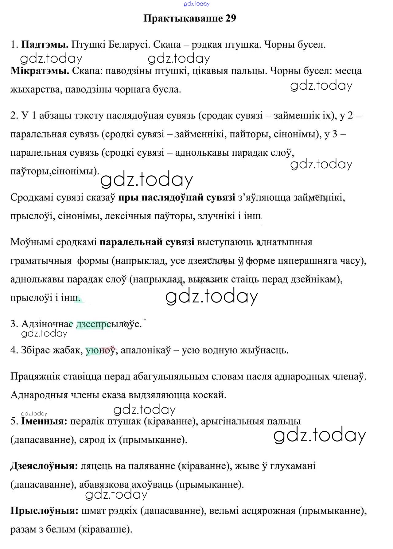 На страницах сайта gdz.today вы найдете учебный и вспомогательный материал, направленный на улучшения знаний школьной программы. ГДЗ - онлайн мир знаний Рашальнік да практыкаванняў 29 Учебнику по Белорусскому языку для 9 класса Валочка, Васюковіч Национальный институт образования 2019