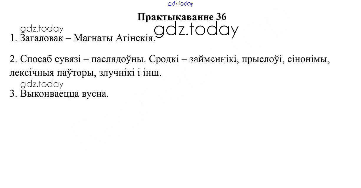 На страницах сайта gdz.today вы найдете учебный и вспомогательный материал, направленный на улучшения знаний школьной программы. ГДЗ - онлайн мир знаний Рашальнік да практыкаванняў 36 Учебнику по Белорусскому языку для 9 класса Валочка, Васюковіч Национальный институт образования 2019