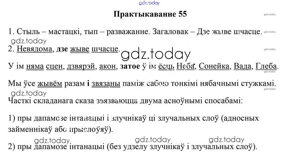 На страницах сайта gdz.today вы найдете учебный и вспомогательный материал, направленный на улучшения знаний школьной программы. ГДЗ - онлайн мир знаний Рашальнік да практыкаванняў 55 Учебнику по Белорусскому языку для 9 класса Валочка, Васюковіч Национальный институт образования 2019