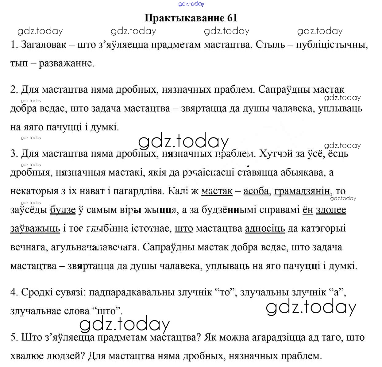 Ответы к Рашальнік да практыкаванняў 61 Учебнику по Белорусскому языку для 9 класса Валочка, Васюковіч Национальный институт образования 2019