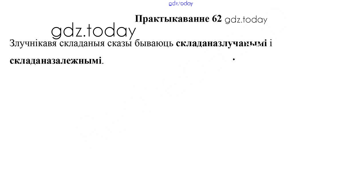 На страницах сайта gdz.today вы найдете учебный и вспомогательный материал, направленный на улучшения знаний школьной программы. ГДЗ - онлайн мир знаний Рашальнік да практыкаванняў 62 Учебнику по Белорусскому языку для 9 класса Валочка, Васюковіч Национальный институт образования 2019