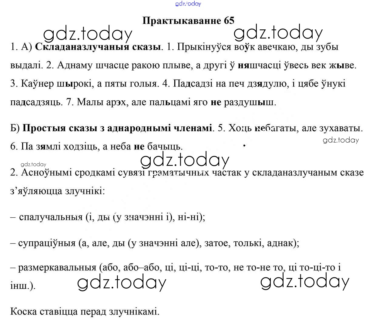 На страницах сайта gdz.today вы найдете учебный и вспомогательный материал, направленный на улучшения знаний школьной программы. ГДЗ - онлайн мир знаний Рашальнік да практыкаванняў 65 Учебнику по Белорусскому языку для 9 класса Валочка, Васюковіч Национальный институт образования 2019
