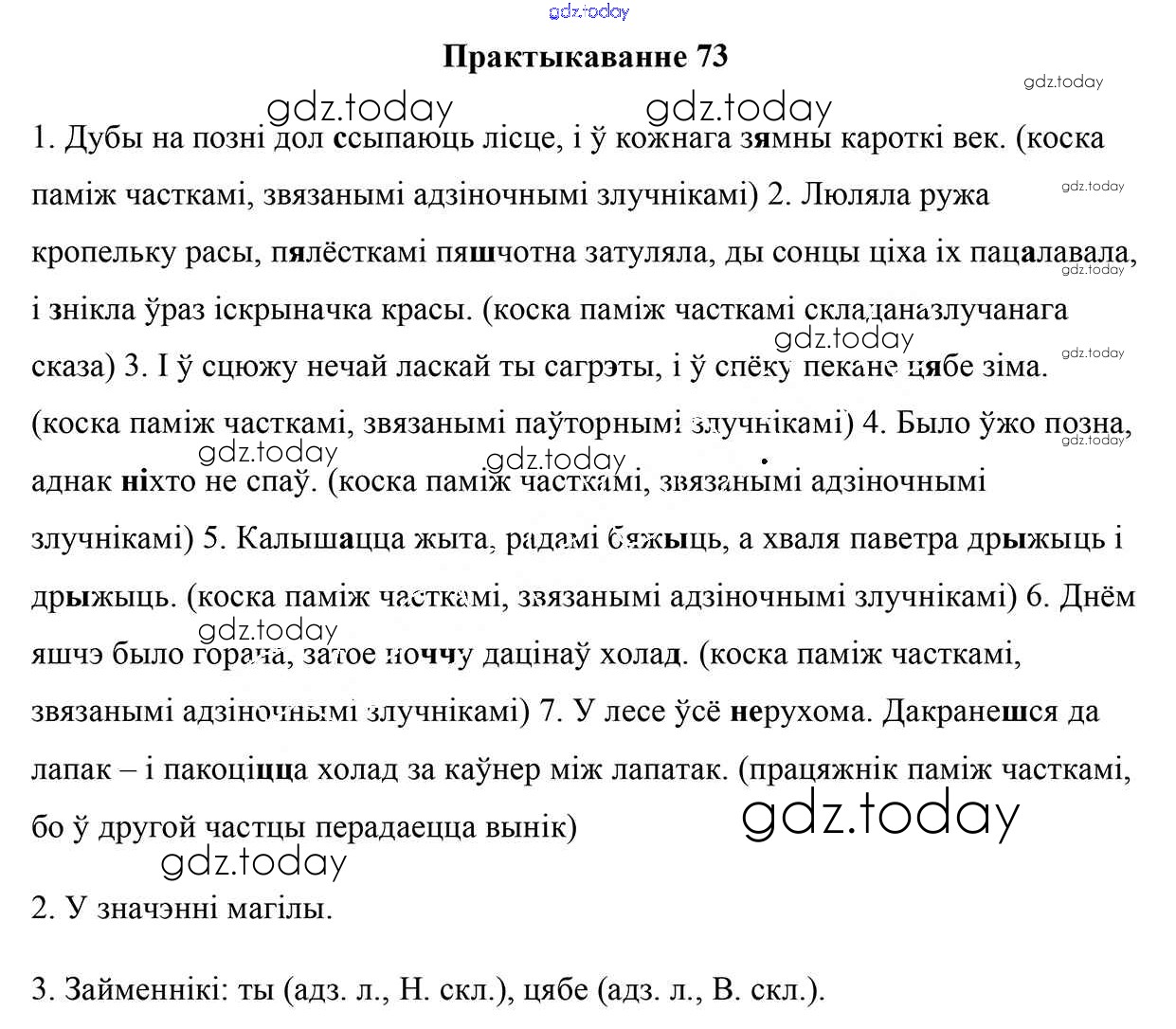 На страницах сайта gdz.today вы найдете учебный и вспомогательный материал, направленный на улучшения знаний школьной программы. ГДЗ - онлайн мир знаний Рашальнік да практыкаванняў 73 Учебнику по Белорусскому языку для 9 класса Валочка, Васюковіч Национальный институт образования 2019