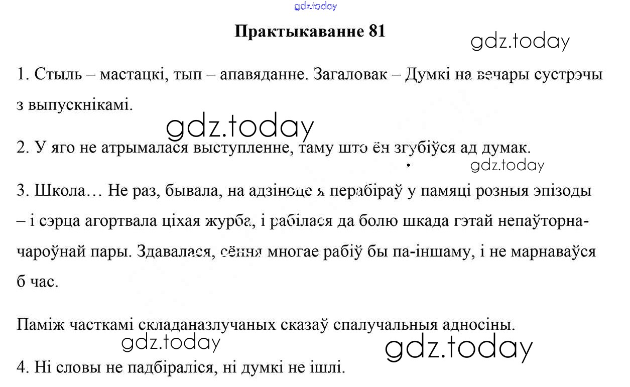 На страницах сайта gdz.today вы найдете учебный и вспомогательный материал, направленный на улучшения знаний школьной программы. ГДЗ - онлайн мир знаний Рашальнік да практыкаванняў 81 Учебнику по Белорусскому языку для 9 класса Валочка, Васюковіч Национальный институт образования 2019