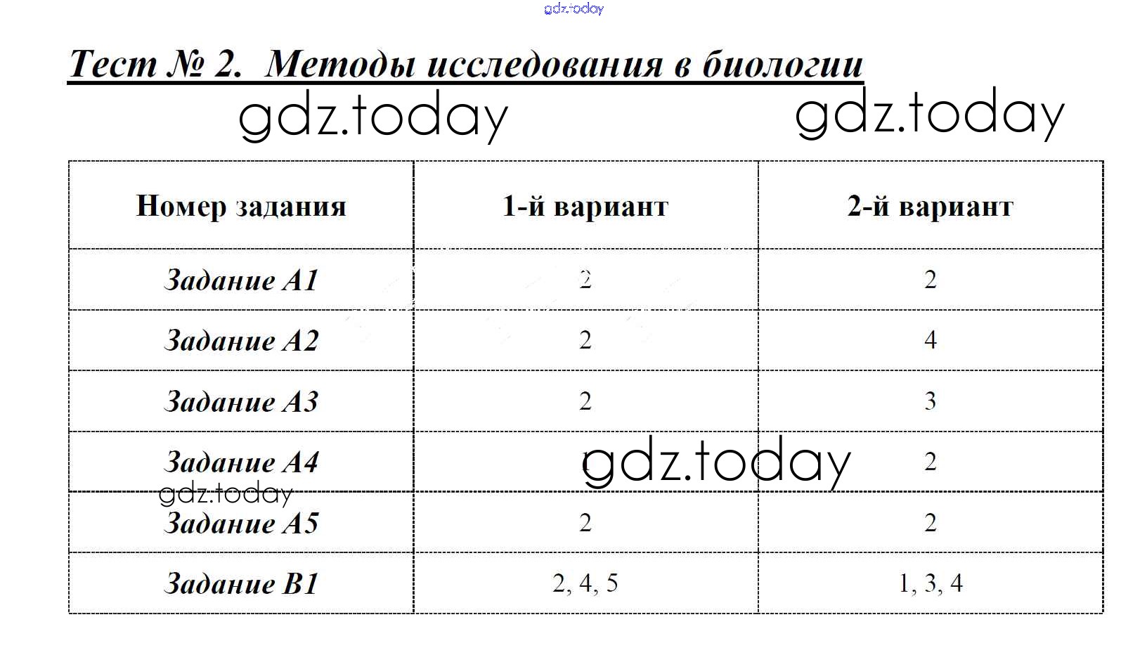 На страницах сайта gdz.today вы найдете учебный и вспомогательный материал, направленный на улучшения знаний школьной программы. ГДЗ - онлайн мир знаний Решение к тестам Тест №2. Методы исследования в биологии Контрольно-измерительным материалам (КИМ) по Биологии для 9 класса Богданов ВАКО 2017