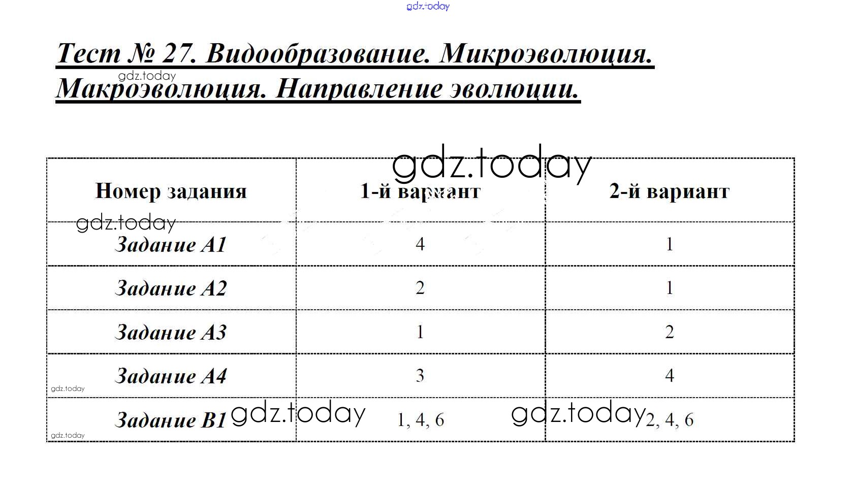 На страницах сайта gdz.today вы найдете учебный и вспомогательный материал, направленный на улучшения знаний школьной программы. ГДЗ - онлайн мир знаний Решение к тестам Тест №27. Видообразование. Микроэволюция Контрольно-измерительным материалам (КИМ) по Биологии для 9 класса Богданов ВАКО 2017