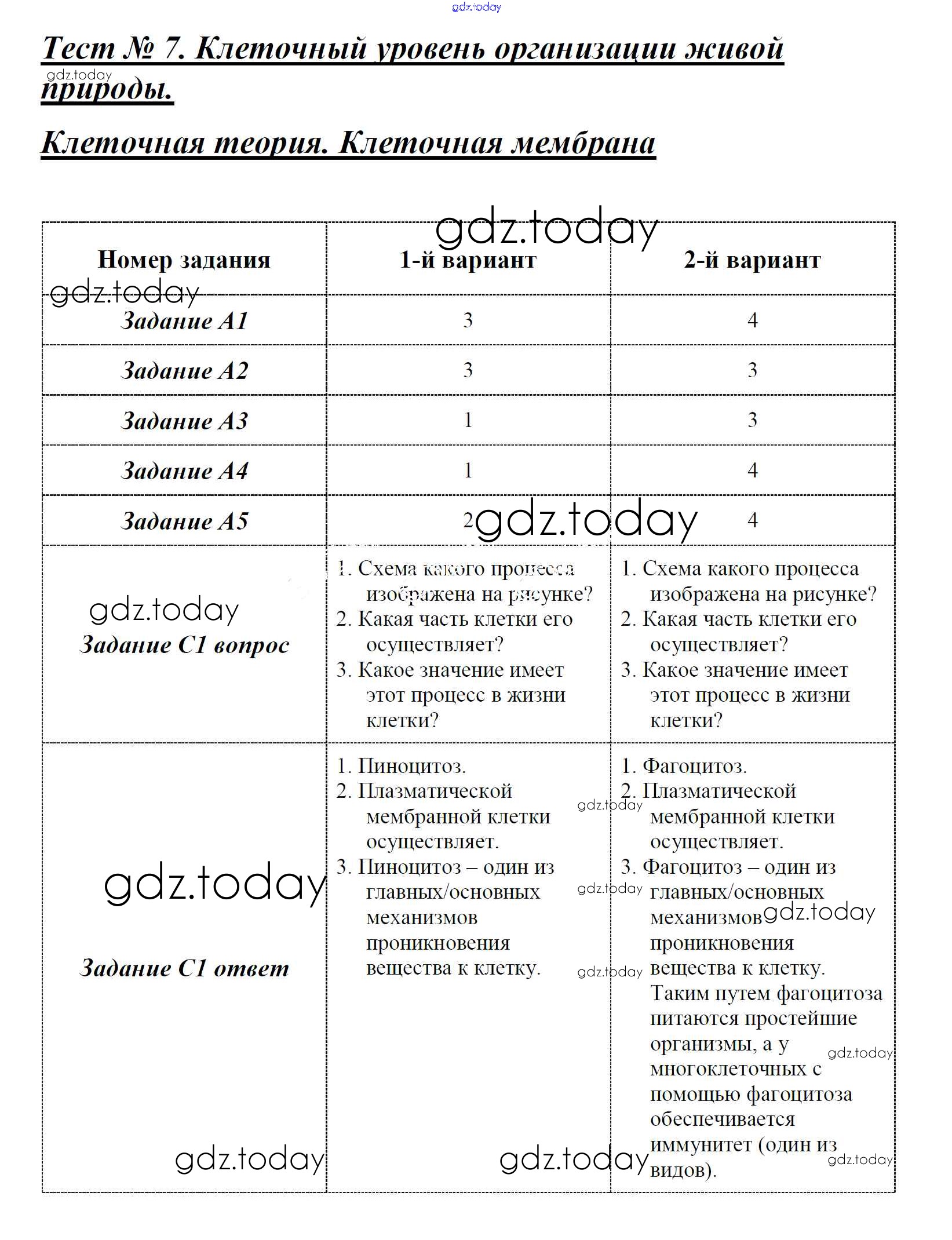Ответы к Решение к тестам Тест №7. Клеточный уровень организации живой природы Контрольно-измерительным материалам (КИМ) по Биологии для 9 класса Богданов ВАКО 2017