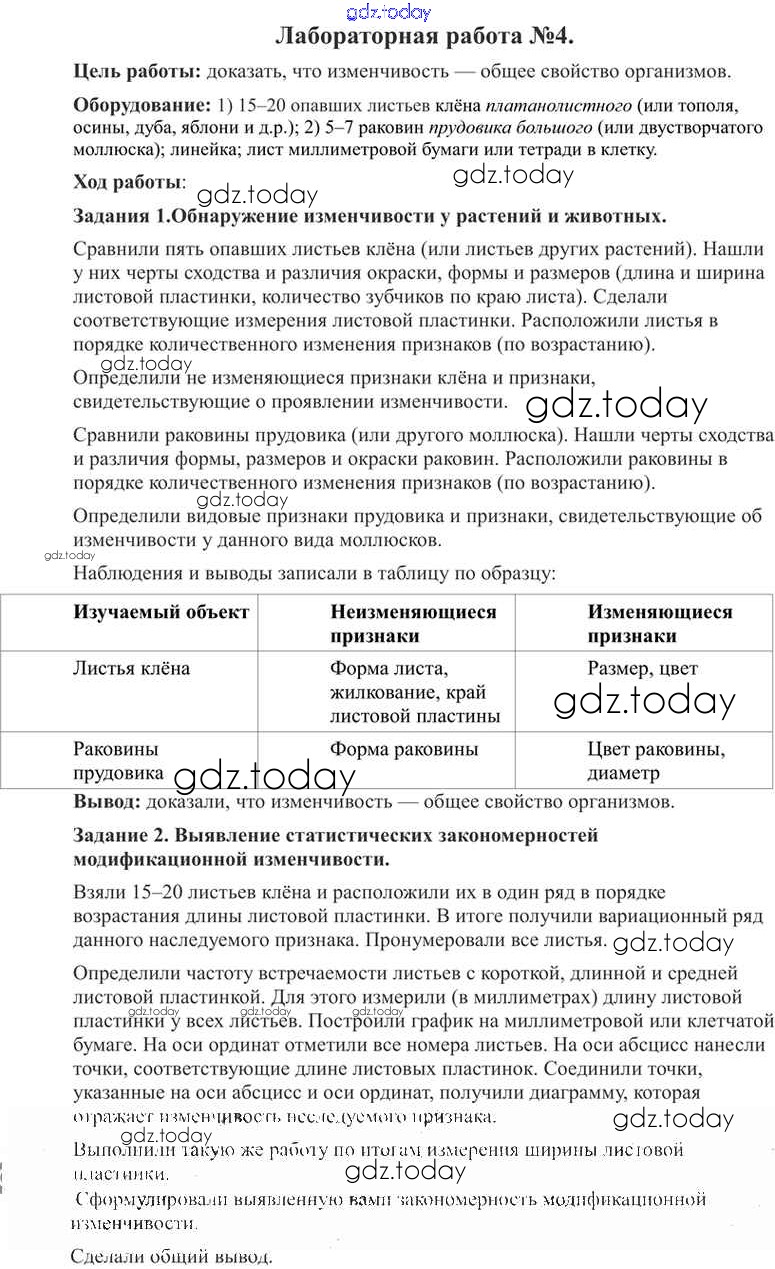 На страницах сайта gdz.today вы найдете учебный и вспомогательный материал, направленный на улучшения знаний школьной программы. ГДЗ - онлайн мир знаний Лабораторные работы 4 Учебнику по Биологии для 9 класса Пономарева, Корнилова Вентана-граф 2019