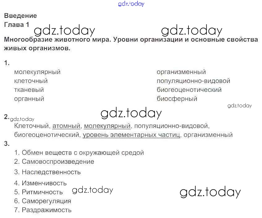 Ответы к Решение к главе 1. Многообразие животного мира стр.8 Рабочей тетради по Биологии для 9 класса Цибулевский, Захаров Дрофа Вертикаль 2015
