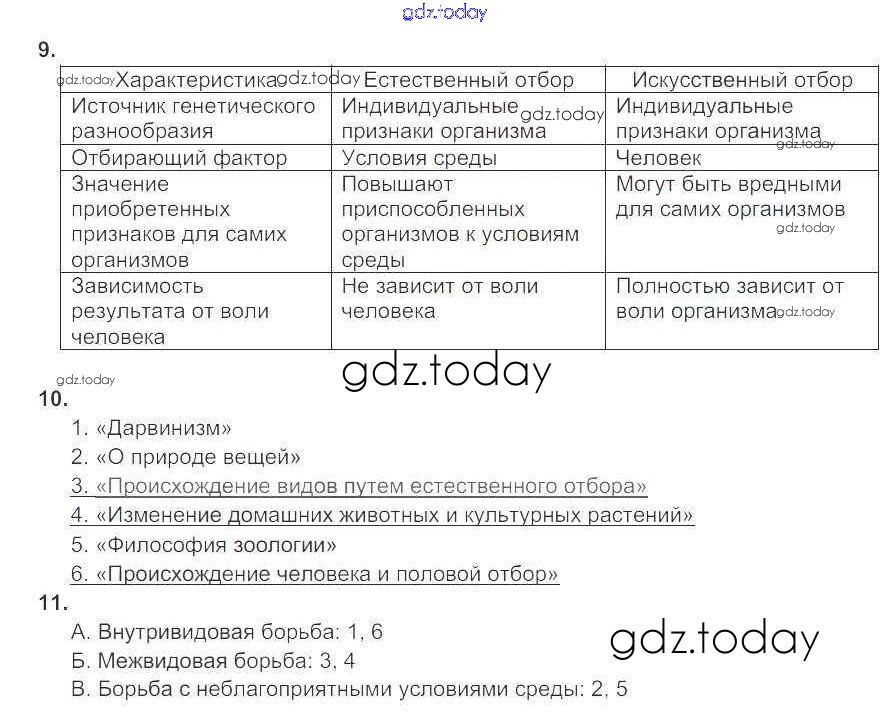 Ответы к Решение к главе 11. Теория Чарльза Дарвина о происхождении видов путём естественного отбора стр.74 Рабочей тетради по Биологии для 9 класса Цибулевский, Захаров Дрофа Вертикаль 2015
