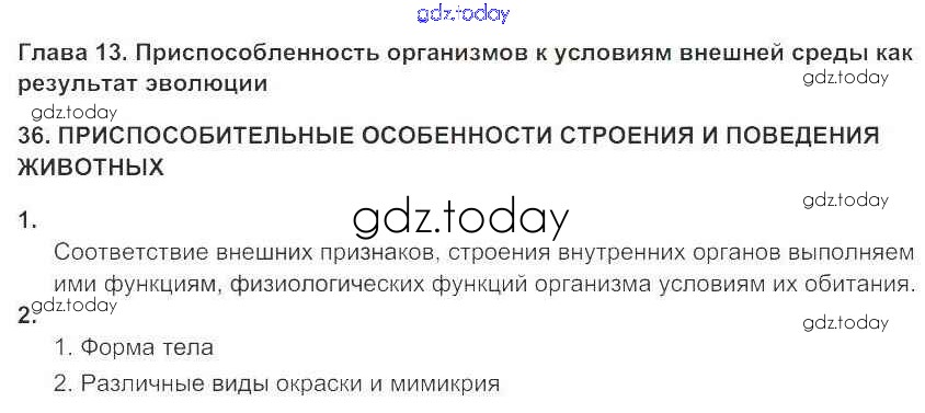 На страницах сайта gdz.today вы найдете учебный и вспомогательный материал, направленный на улучшения знаний школьной программы. ГДЗ - онлайн мир знаний Решение к главе 13. Приспособленность организмов к условиям внешней среды как результат эволюции стр.87 Рабочей тетради по Биологии для 9 класса Цибулевский, Захаров Дрофа Вертикаль 2015
