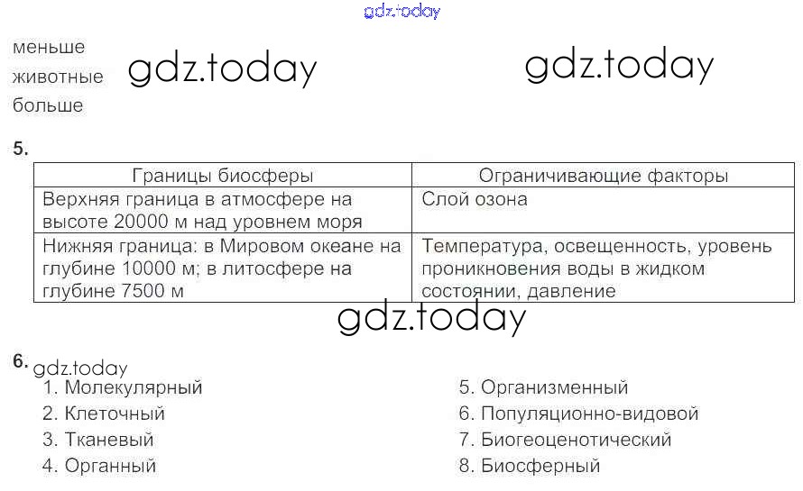 Ответы к Решение к главе 16. Биосфера, её структура и функции стр.114 Рабочей тетради по Биологии для 9 класса Цибулевский, Захаров Дрофа Вертикаль 2015