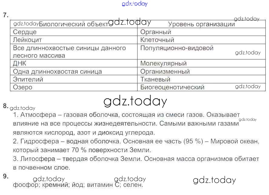 Ответы к Решение к главе 16. Биосфера, её структура и функции стр.115 Рабочей тетради по Биологии для 9 класса Цибулевский, Захаров Дрофа Вертикаль 2015