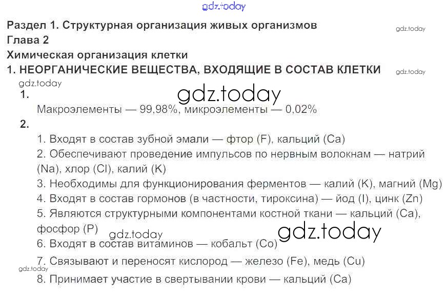На страницах сайта gdz.today вы найдете учебный и вспомогательный материал, направленный на улучшения знаний школьной программы. ГДЗ - онлайн мир знаний Решение к главе 2. Химическая организация клетки стр.11 Рабочей тетради по Биологии для 9 класса Цибулевский, Захаров Дрофа Вертикаль 2015