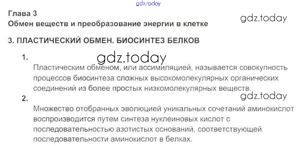 Ответы к Решение к главе 3. Обмен веществ и преобразование энергии в клетки стр.18 Рабочей тетради по Биологии для 9 класса Цибулевский, Захаров Дрофа Вертикаль 2015