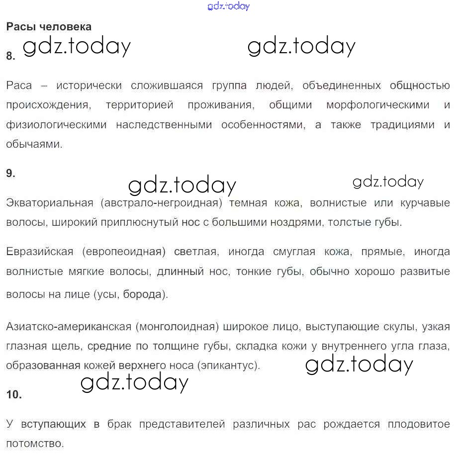 Ответы к Решение к главе 1. Место человека в системе органического мира стр.9 Рабочей тетради по Биологии для 9 класса Сонин, Агафонова Дрофа Вертикаль 2017