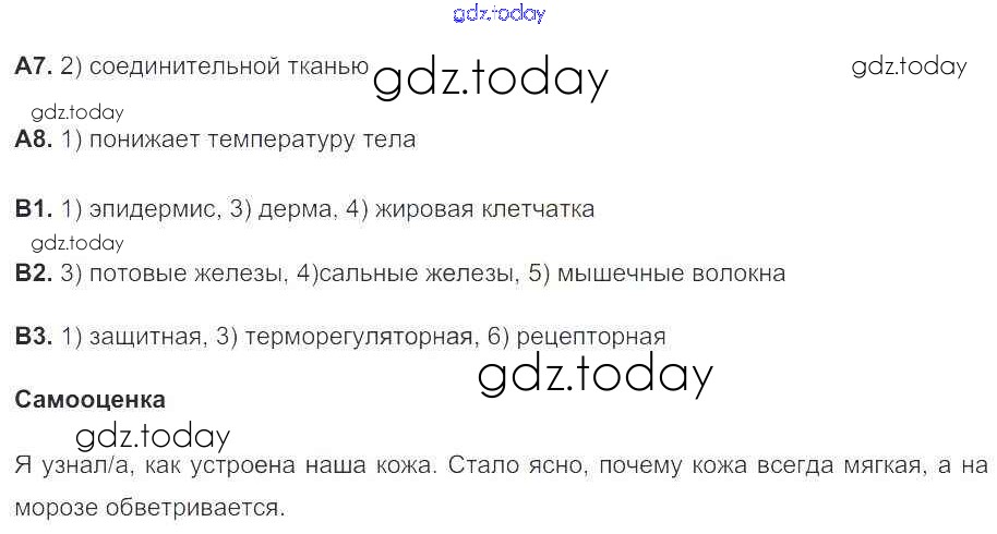 На страницах сайта gdz.today вы найдете учебный и вспомогательный материал, направленный на улучшения знаний школьной программы. ГДЗ - онлайн мир знаний Решение к главе 11. Покровы тела стр.131 Рабочей тетради по Биологии для 9 класса Сонин, Агафонова Дрофа Вертикаль 2017