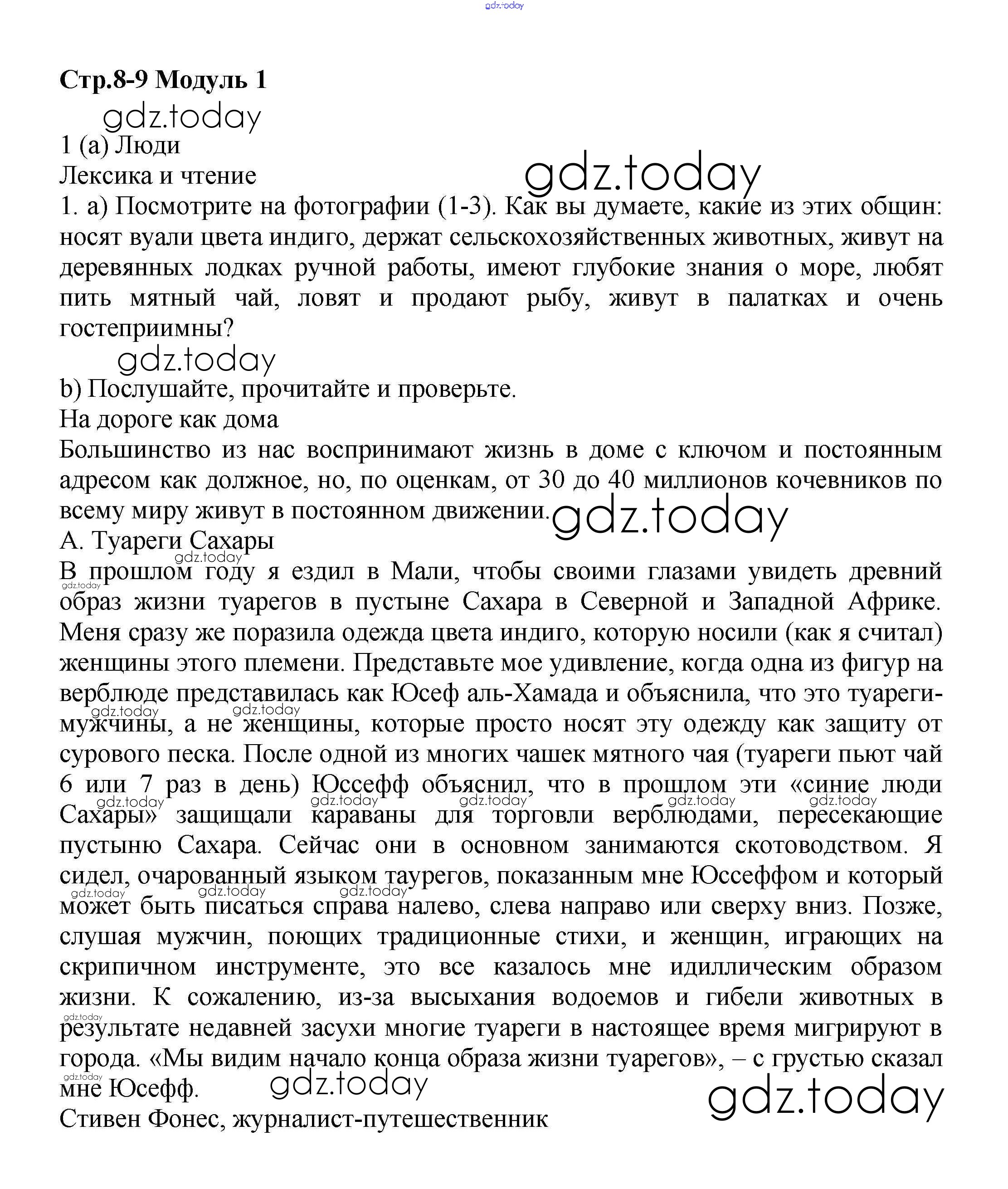 На страницах сайта gdz.today вы найдете учебный и вспомогательный материал, направленный на улучшения знаний школьной программы. ГДЗ - онлайн мир знаний Решение к Module 1. Lifestyles стр.8-9 Учебнику по Английскому языку для 9 класса Баранова, Дули Углубленный уровень Просвещение Starlight 2017