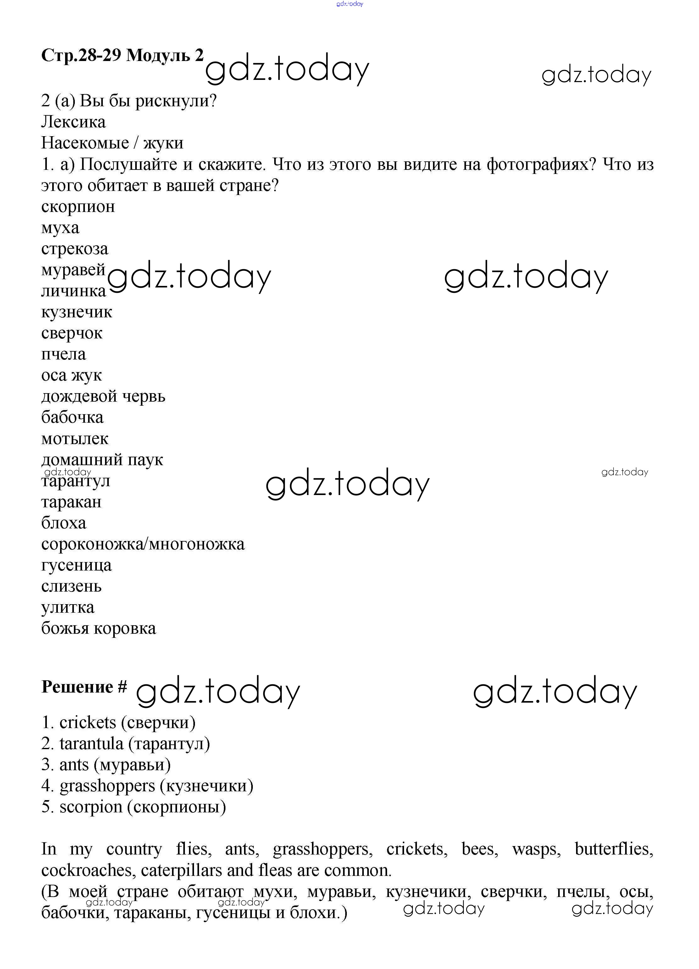 На страницах сайта gdz.today вы найдете учебный и вспомогательный материал, направленный на улучшения знаний школьной программы. ГДЗ - онлайн мир знаний Решение к Module 2. Extreme facts стр.28-29 Учебнику по Английскому языку для 9 класса Баранова, Дули Углубленный уровень Просвещение Starlight 2017