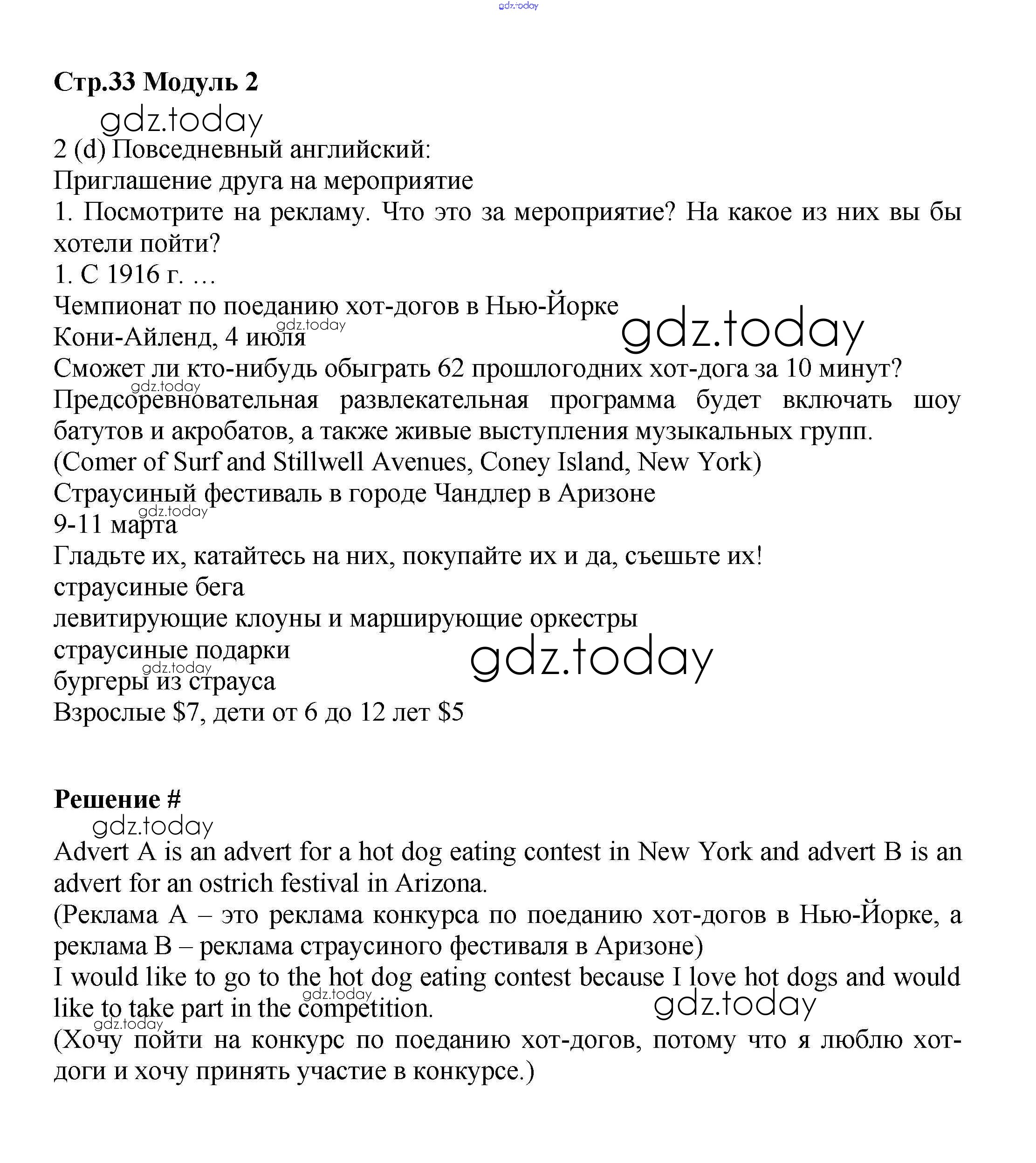 На страницах сайта gdz.today вы найдете учебный и вспомогательный материал, направленный на улучшения знаний школьной программы. ГДЗ - онлайн мир знаний Решение к Module 2. Extreme facts стр.33 Учебнику по Английскому языку для 9 класса Баранова, Дули Углубленный уровень Просвещение Starlight 2017