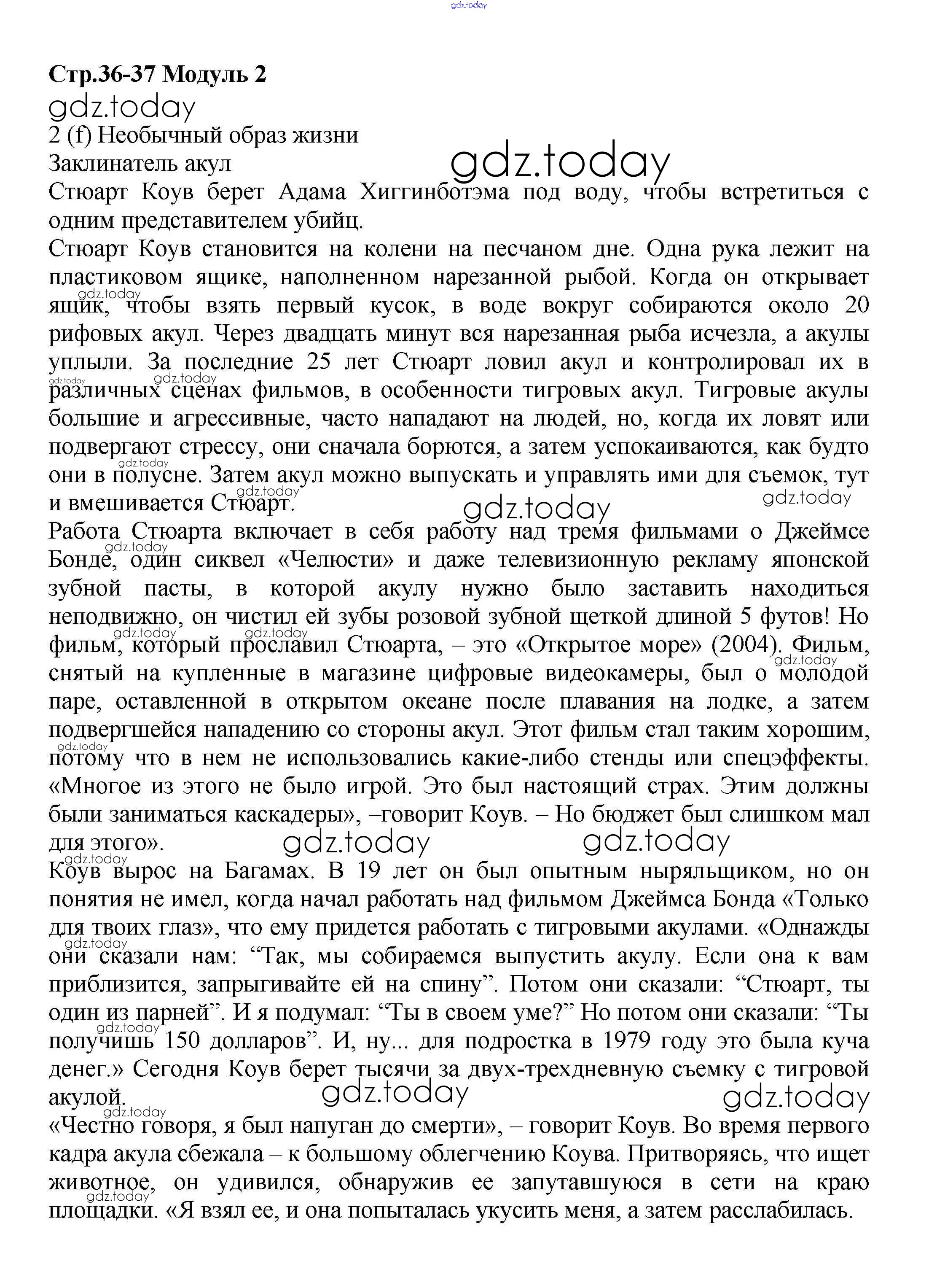 На страницах сайта gdz.today вы найдете учебный и вспомогательный материал, направленный на улучшения знаний школьной программы. ГДЗ - онлайн мир знаний Решение к Module 2. Extreme facts стр.36-37 Учебнику по Английскому языку для 9 класса Баранова, Дули Углубленный уровень Просвещение Starlight 2017