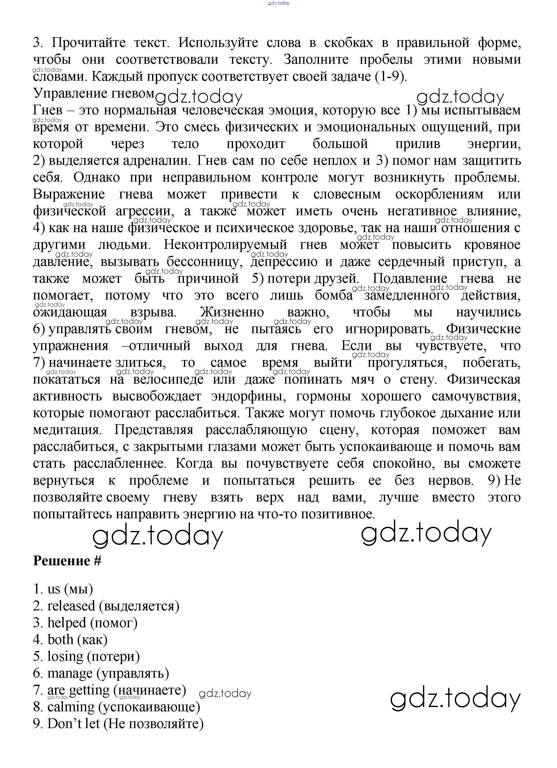 На страницах сайта gdz.today вы найдете учебный и вспомогательный материал, направленный на улучшения знаний школьной программы. ГДЗ - онлайн мир знаний Решение к Module 3. Body and Soul стр.59 Учебнику по Английскому языку для 9 класса Баранова, Дули Углубленный уровень Просвещение Starlight 2017