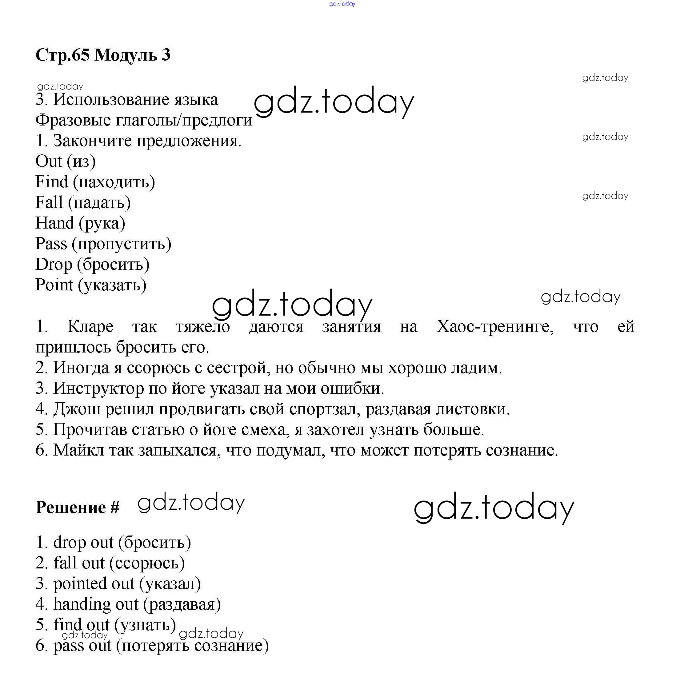 Ответы к Решение к Module 3. Body and Soul стр.65 Учебнику по Английскому языку для 9 класса Баранова, Дули Углубленный уровень Просвещение Starlight 2017