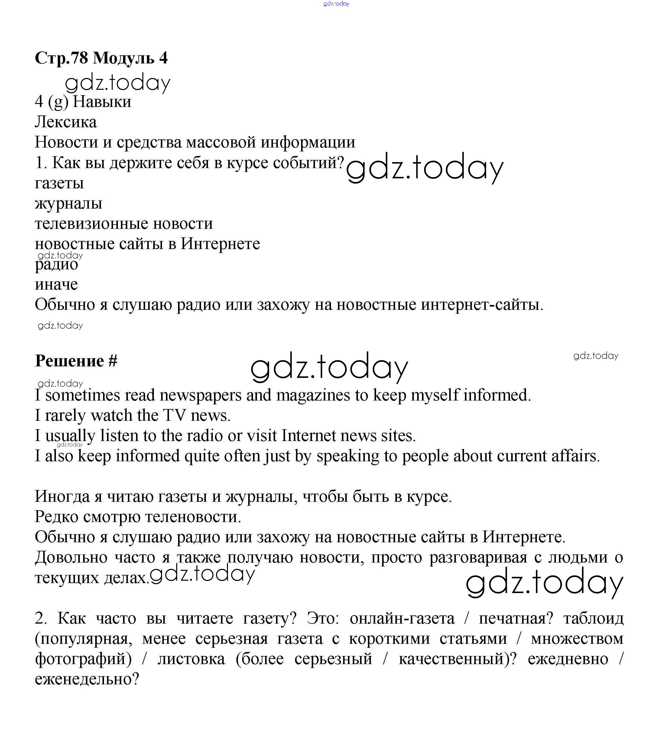 На страницах сайта gdz.today вы найдете учебный и вспомогательный материал, направленный на улучшения знаний школьной программы. ГДЗ - онлайн мир знаний Решение к Module 4. Art & Entertainment стр.78 Учебнику по Английскому языку для 9 класса Баранова, Дули Углубленный уровень Просвещение Starlight 2017