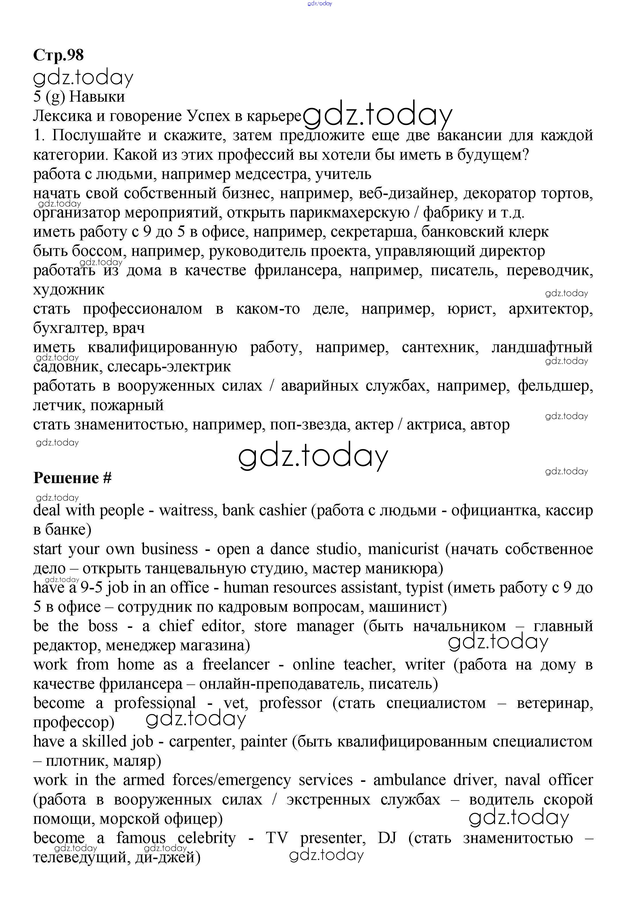 На страницах сайта gdz.today вы найдете учебный и вспомогательный материал, направленный на улучшения знаний школьной программы. ГДЗ - онлайн мир знаний Решение к Module 5. Breakthroughs стр.98 Учебнику по Английскому языку для 9 класса Баранова, Дули Углубленный уровень Просвещение Starlight 2017