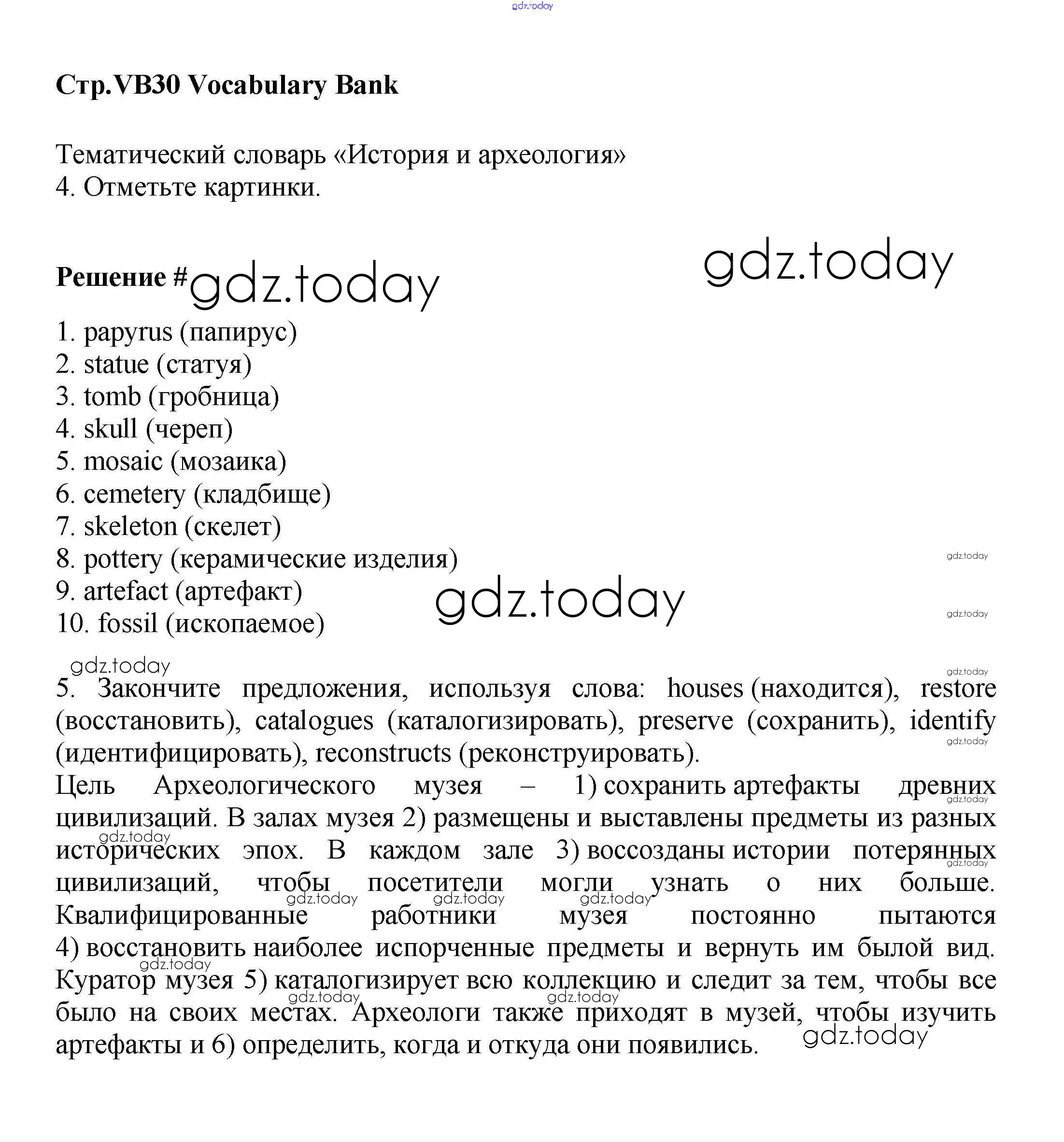 На страницах сайта gdz.today вы найдете учебный и вспомогательный материал, направленный на улучшения знаний школьной программы. ГДЗ - онлайн мир знаний Решение к Vocabulary Bank VB30 Учебнику по Английскому языку для 9 класса Баранова, Дули Углубленный уровень Просвещение Starlight 2017