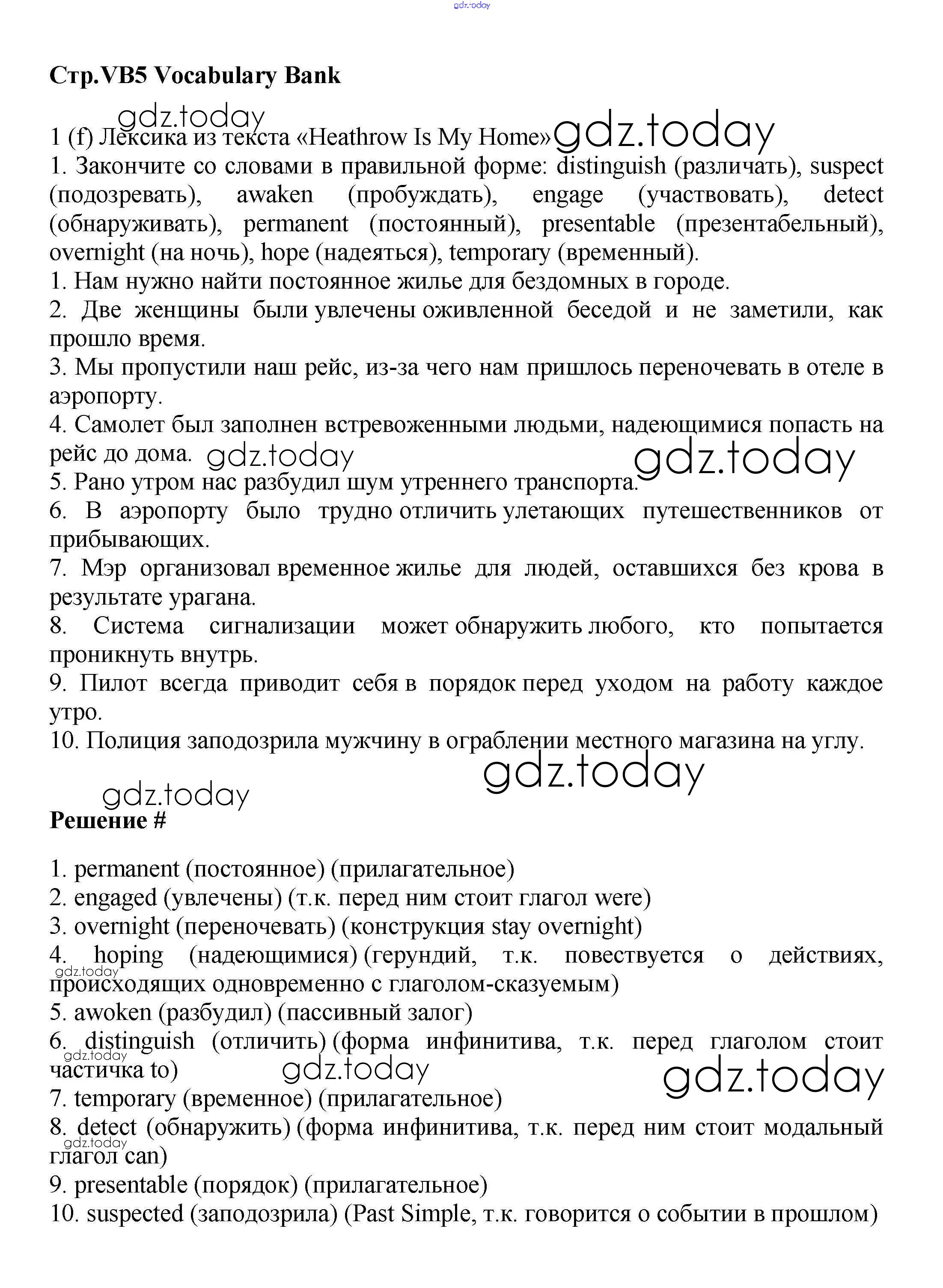 Ответы к Решение к Vocabulary Bank VB5 Учебнику по Английскому языку для 9 класса Баранова, Дули Углубленный уровень Просвещение Starlight 2017