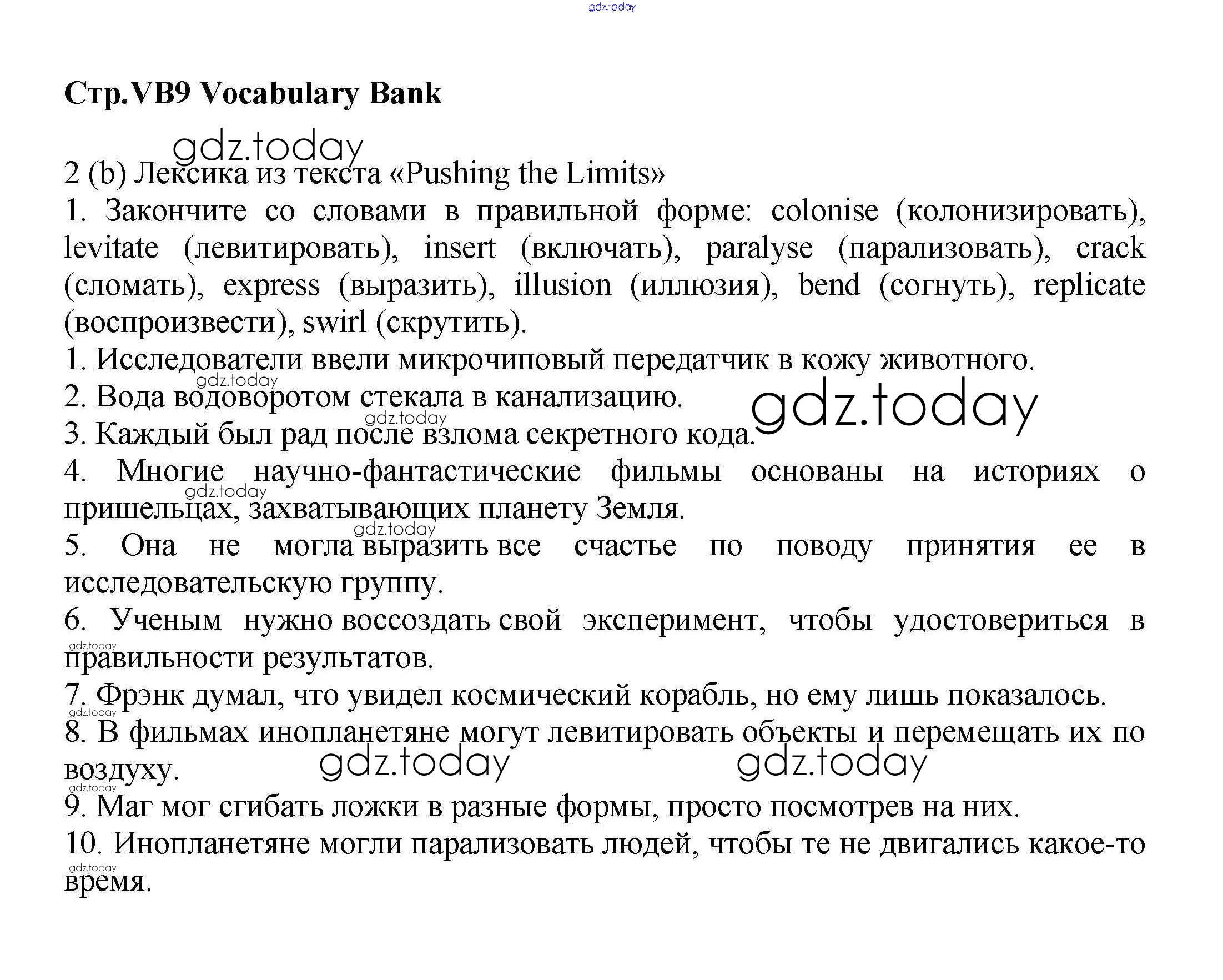 На страницах сайта gdz.today вы найдете учебный и вспомогательный материал, направленный на улучшения знаний школьной программы. ГДЗ - онлайн мир знаний Решение к Vocabulary Bank VB9 Учебнику по Английскому языку для 9 класса Баранова, Дули Углубленный уровень Просвещение Starlight 2017