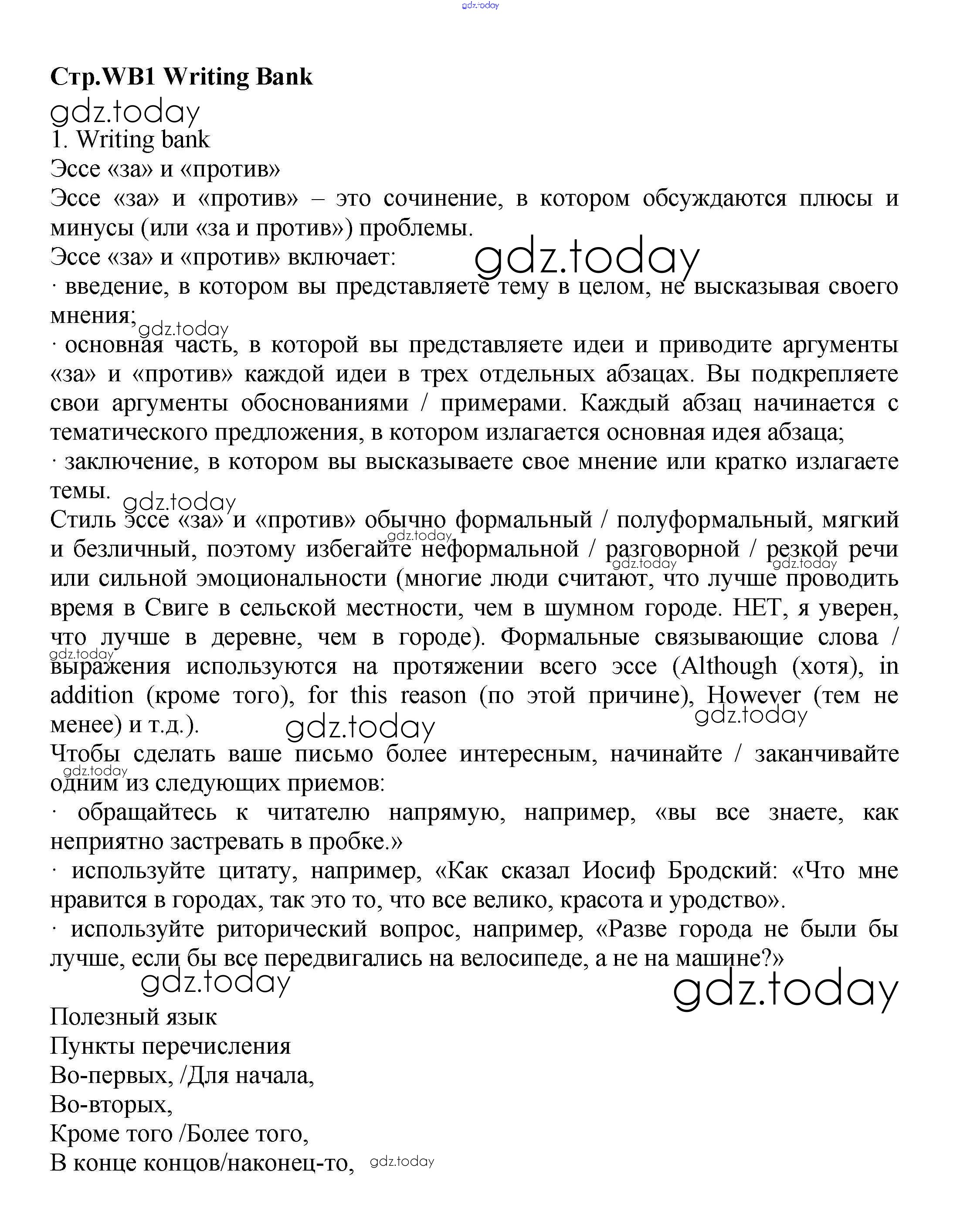 Ответы к Решение к Writing Bank WB1 Учебнику по Английскому языку для 9 класса Баранова, Дули Углубленный уровень Просвещение Starlight 2017