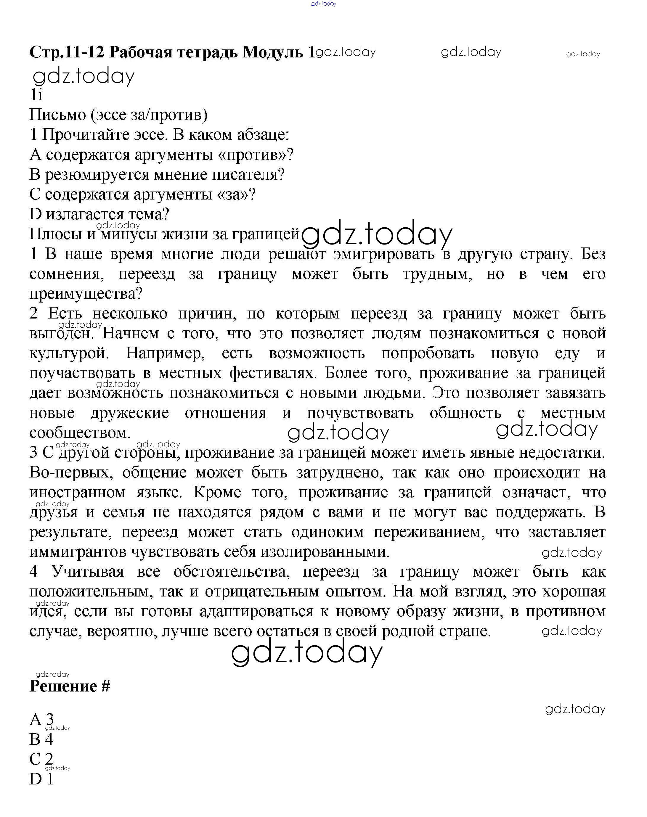 Ответы к Решение к Module 1 стр.11-12 Рабочей тетради по Английскому языку для 9 класса Баранова, Дули Углубленный уровень Просвещение Starlight 2017