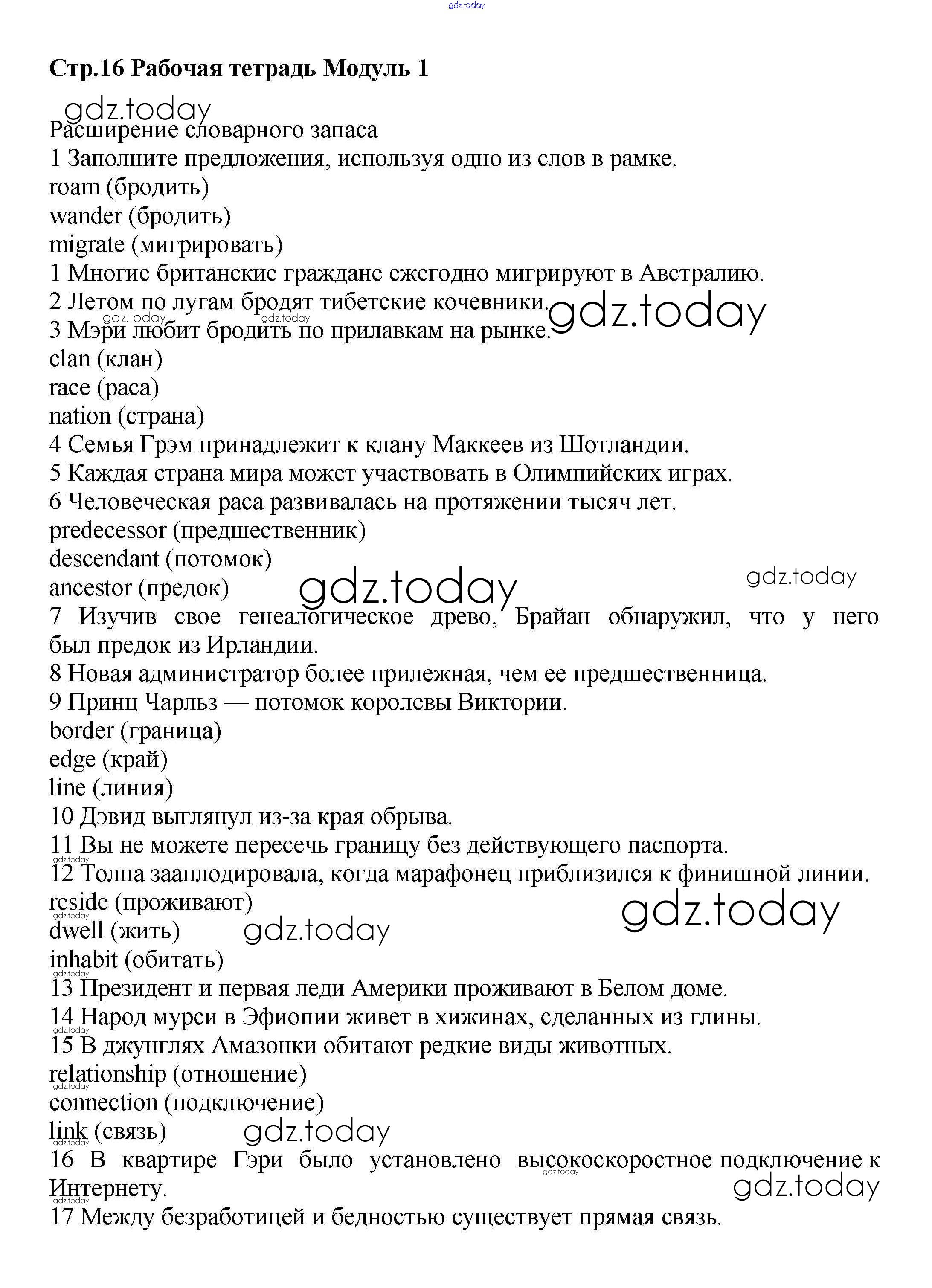 Ответы к Решение к Module 1 стр.16 Рабочей тетради по Английскому языку для 9 класса Баранова, Дули Углубленный уровень Просвещение Starlight 2017