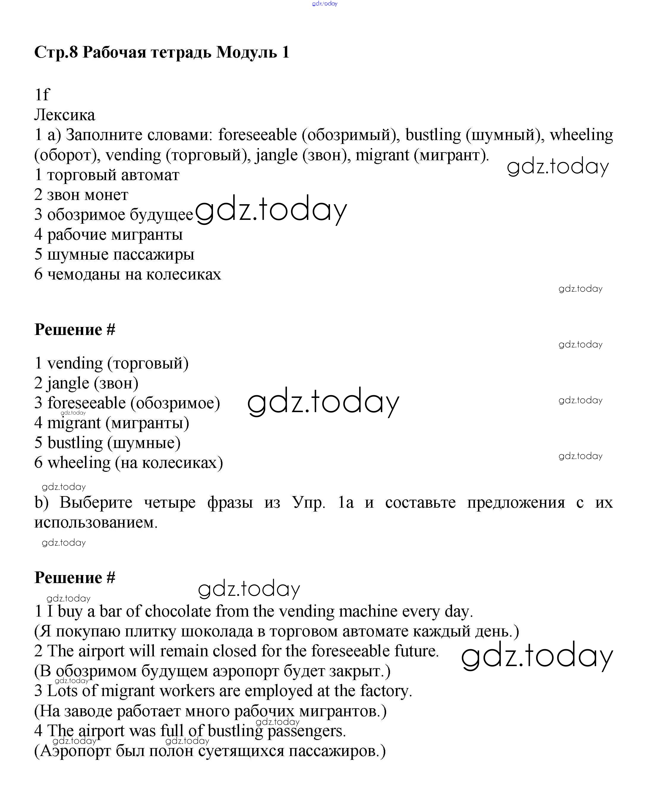 Ответы к Решение к Module 1 стр.8 Рабочей тетради по Английскому языку для 9 класса Баранова, Дули Углубленный уровень Просвещение Starlight 2017