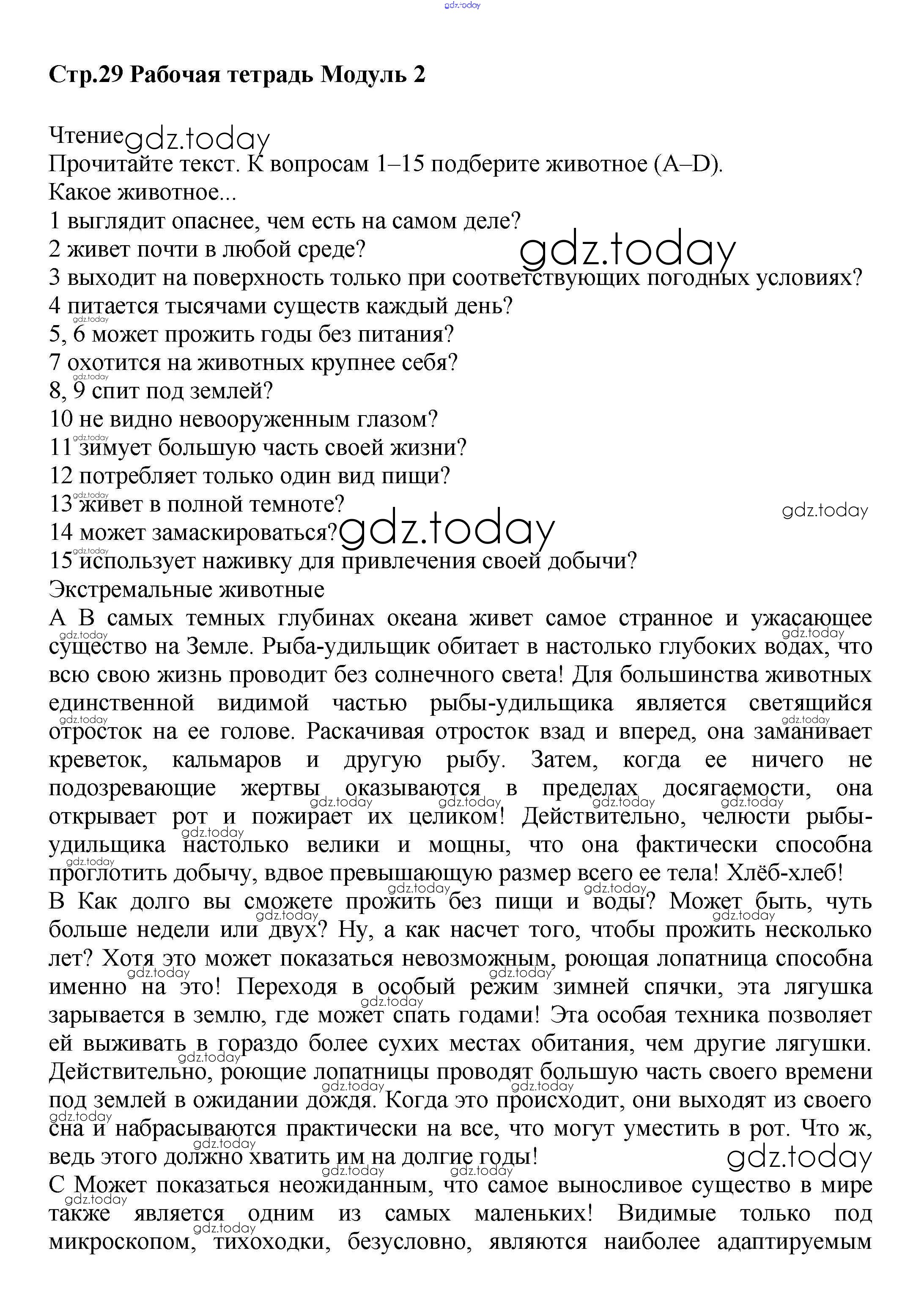 На страницах сайта gdz.today вы найдете учебный и вспомогательный материал, направленный на улучшения знаний школьной программы. ГДЗ - онлайн мир знаний Решение к Module 2 стр.29 Рабочей тетради по Английскому языку для 9 класса Баранова, Дули Углубленный уровень Просвещение Starlight 2017