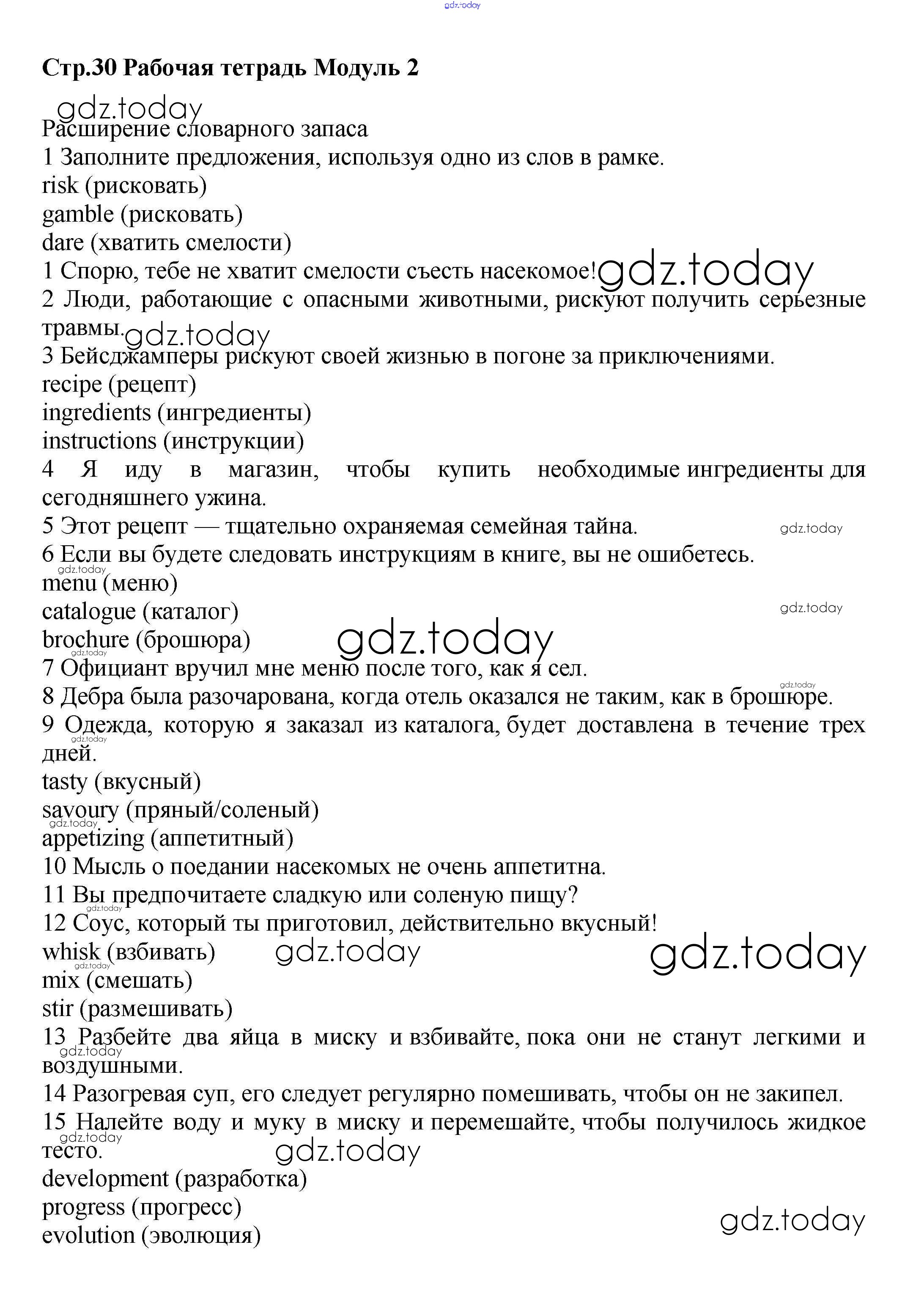 На страницах сайта gdz.today вы найдете учебный и вспомогательный материал, направленный на улучшения знаний школьной программы. ГДЗ - онлайн мир знаний Решение к Module 2 стр.30 Рабочей тетради по Английскому языку для 9 класса Баранова, Дули Углубленный уровень Просвещение Starlight 2017