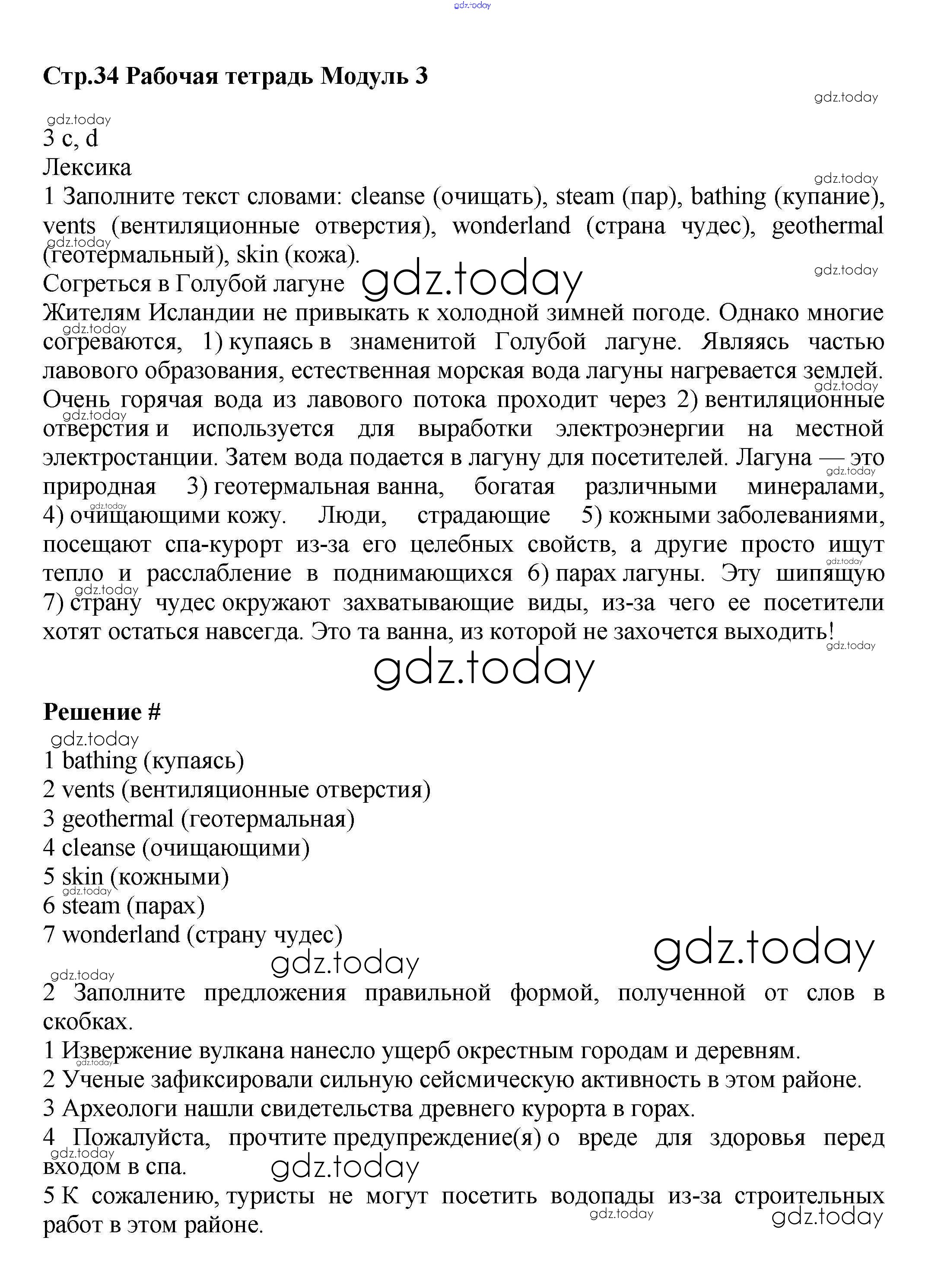 На страницах сайта gdz.today вы найдете учебный и вспомогательный материал, направленный на улучшения знаний школьной программы. ГДЗ - онлайн мир знаний Решение к Module 3 стр.34 Рабочей тетради по Английскому языку для 9 класса Баранова, Дули Углубленный уровень Просвещение Starlight 2017