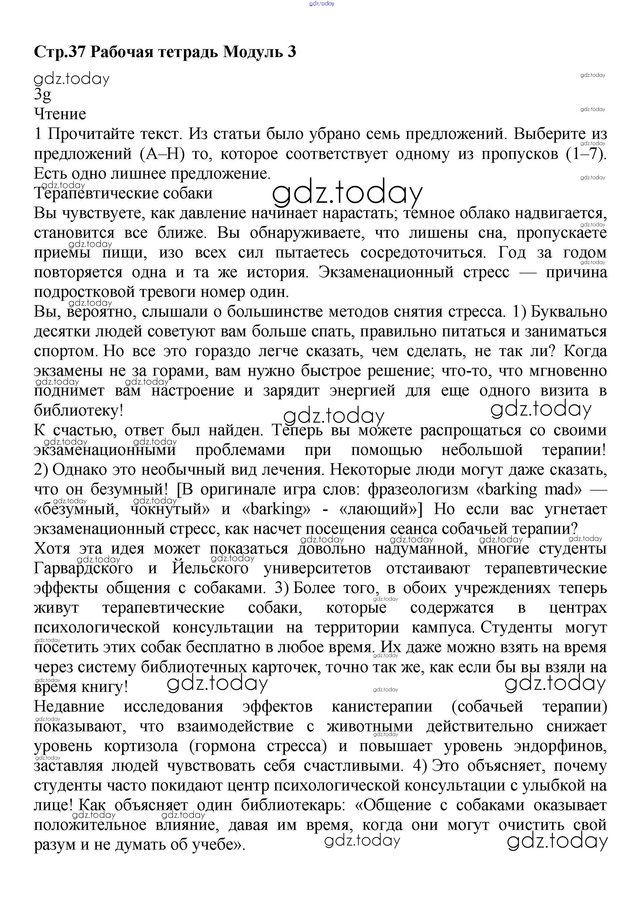 На страницах сайта gdz.today вы найдете учебный и вспомогательный материал, направленный на улучшения знаний школьной программы. ГДЗ - онлайн мир знаний Решение к Module 3 стр.37 Рабочей тетради по Английскому языку для 9 класса Баранова, Дули Углубленный уровень Просвещение Starlight 2017