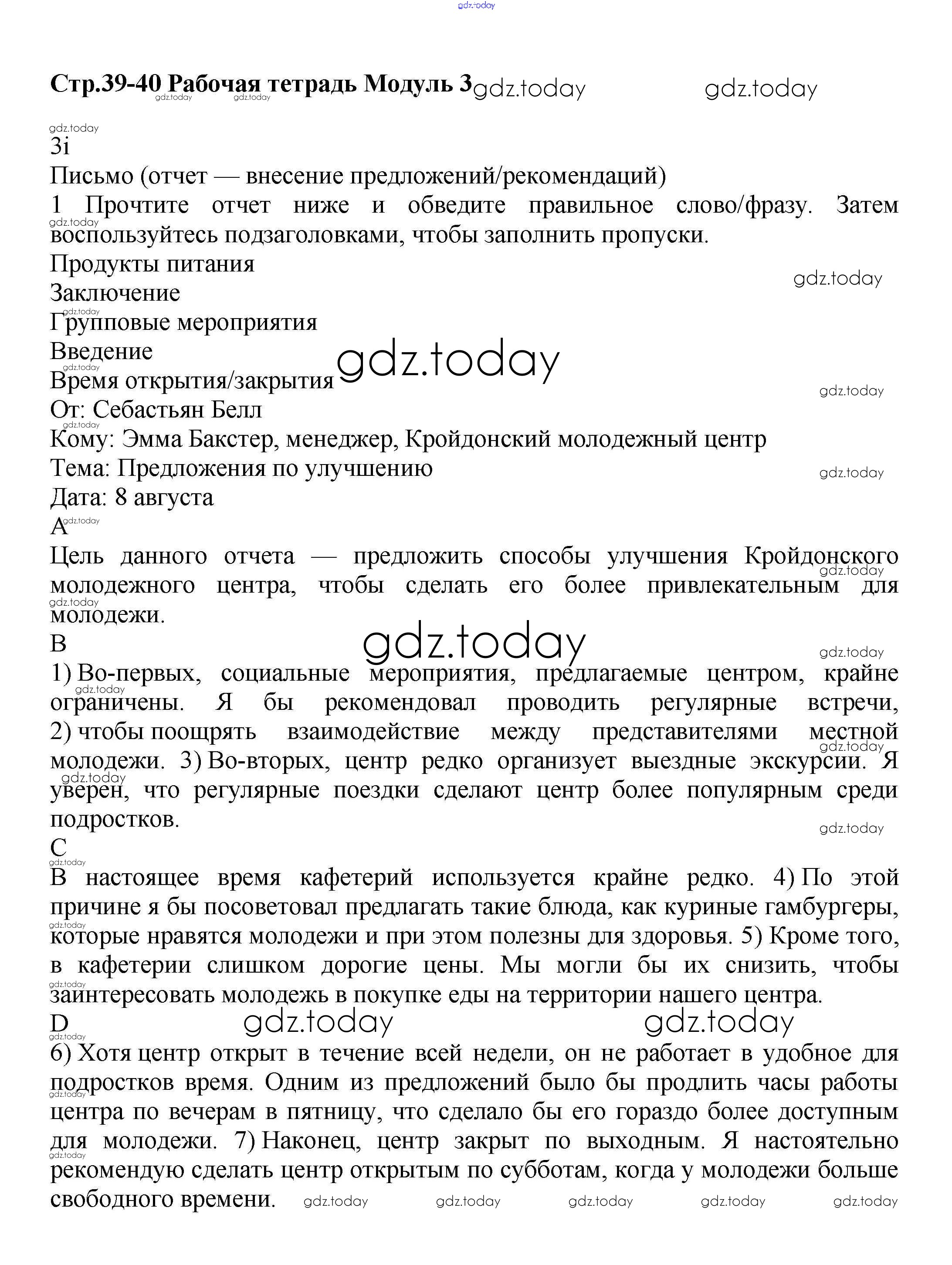 На страницах сайта gdz.today вы найдете учебный и вспомогательный материал, направленный на улучшения знаний школьной программы. ГДЗ - онлайн мир знаний Решение к Module 3 стр.39-40 Рабочей тетради по Английскому языку для 9 класса Баранова, Дули Углубленный уровень Просвещение Starlight 2017