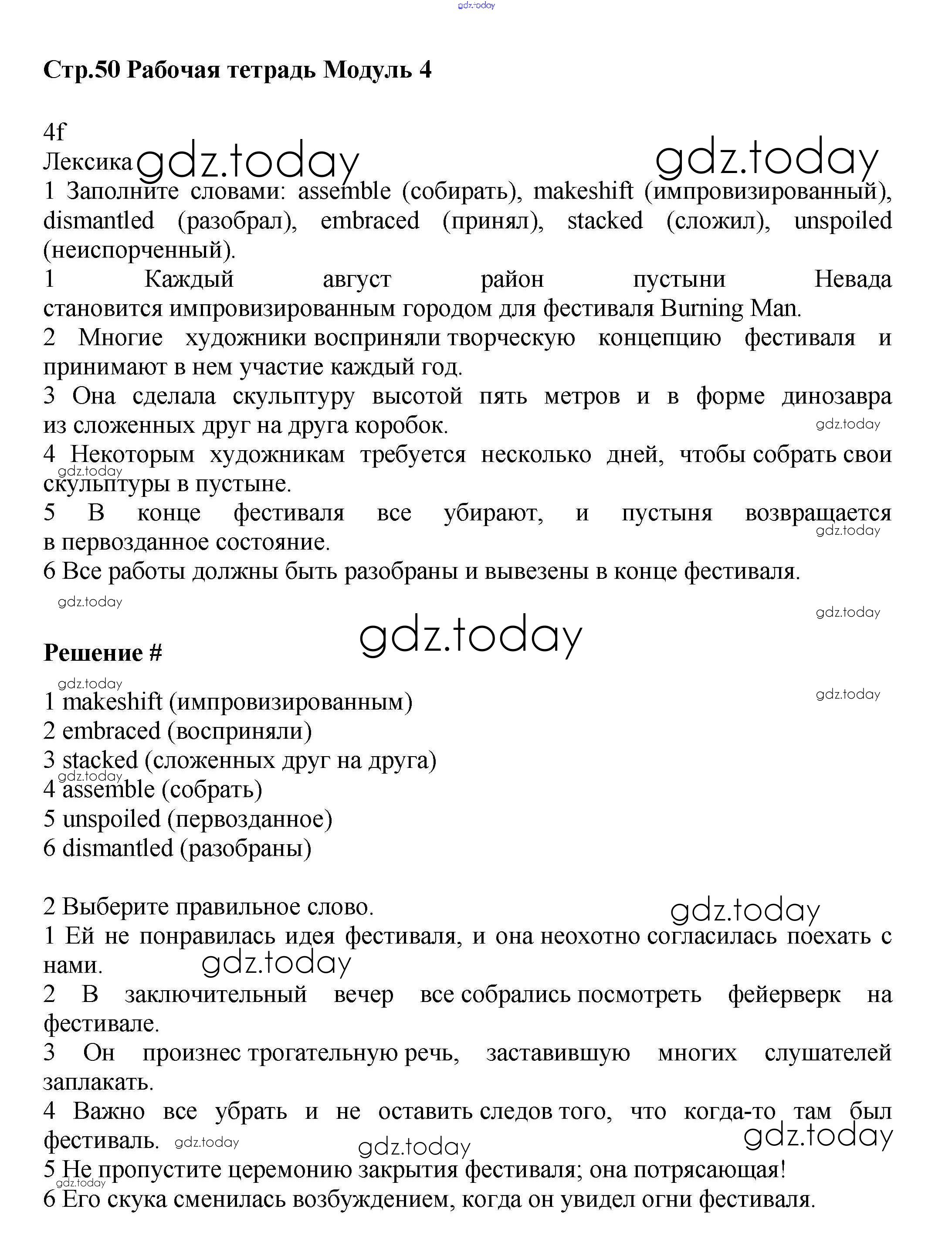 Ответы к Решение к Module 4 стр.50 Рабочей тетради по Английскому языку для 9 класса Баранова, Дули Углубленный уровень Просвещение Starlight 2017
