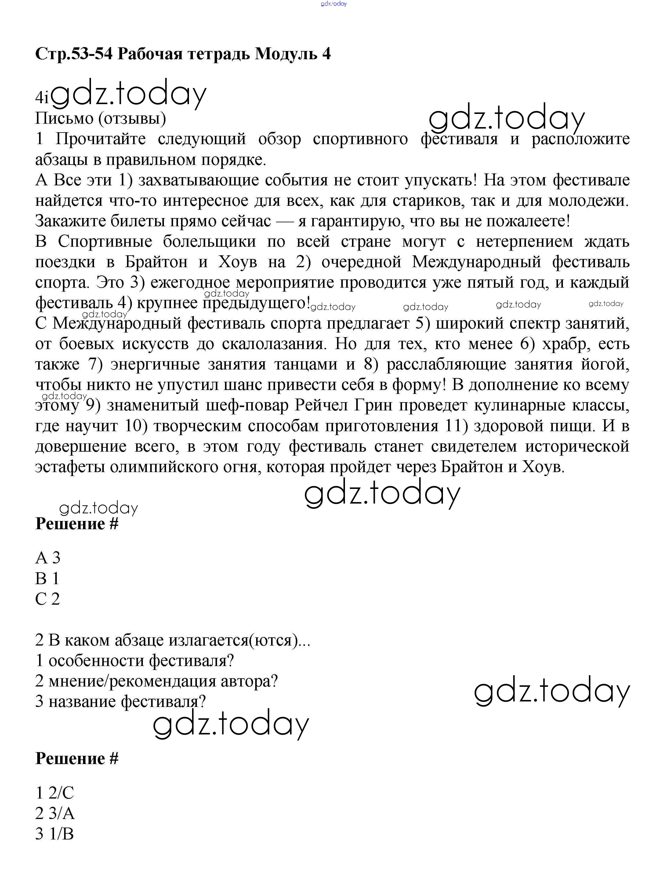 Ответы к Решение к Module 4 стр.53-54 Рабочей тетради по Английскому языку для 9 класса Баранова, Дули Углубленный уровень Просвещение Starlight 2017