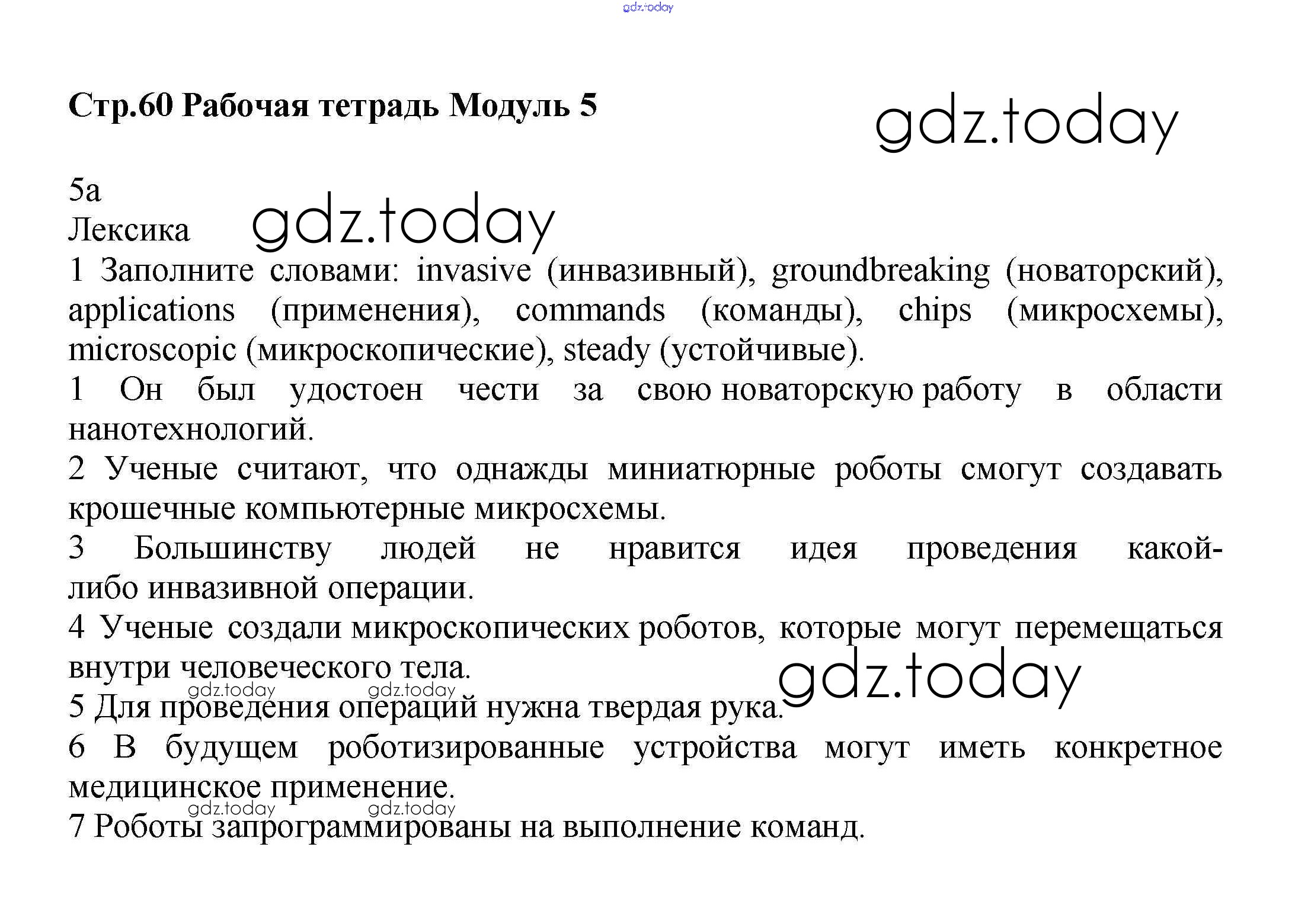 Ответы к Решение к Module 5 стр.60 Рабочей тетради по Английскому языку для 9 класса Баранова, Дули Углубленный уровень Просвещение Starlight 2017