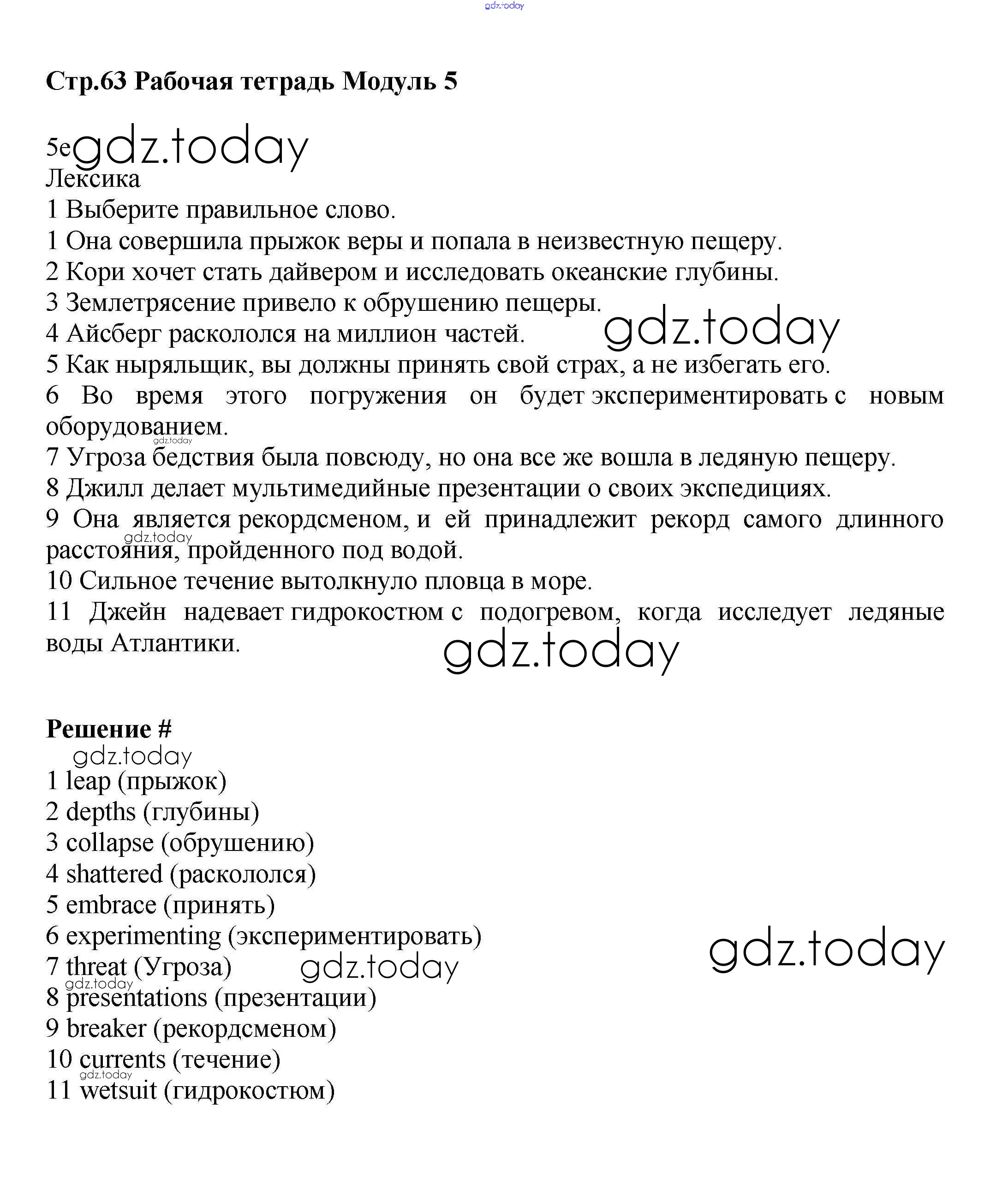 Ответы к Решение к Module 5 стр.63 Рабочей тетради по Английскому языку для 9 класса Баранова, Дули Углубленный уровень Просвещение Starlight 2017