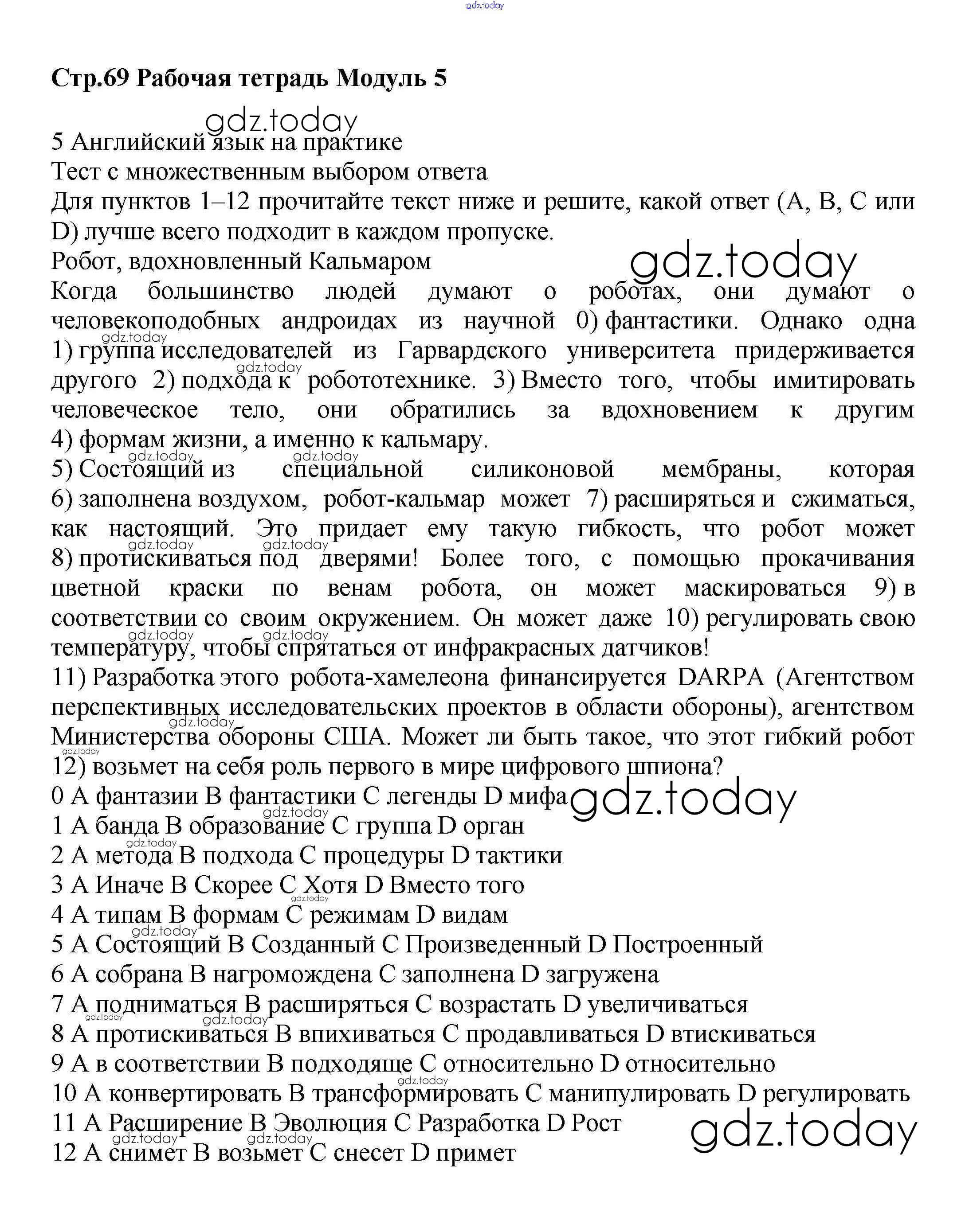 Ответы к Решение к Module 5 стр.69 Рабочей тетради по Английскому языку для 9 класса Баранова, Дули Углубленный уровень Просвещение Starlight 2017