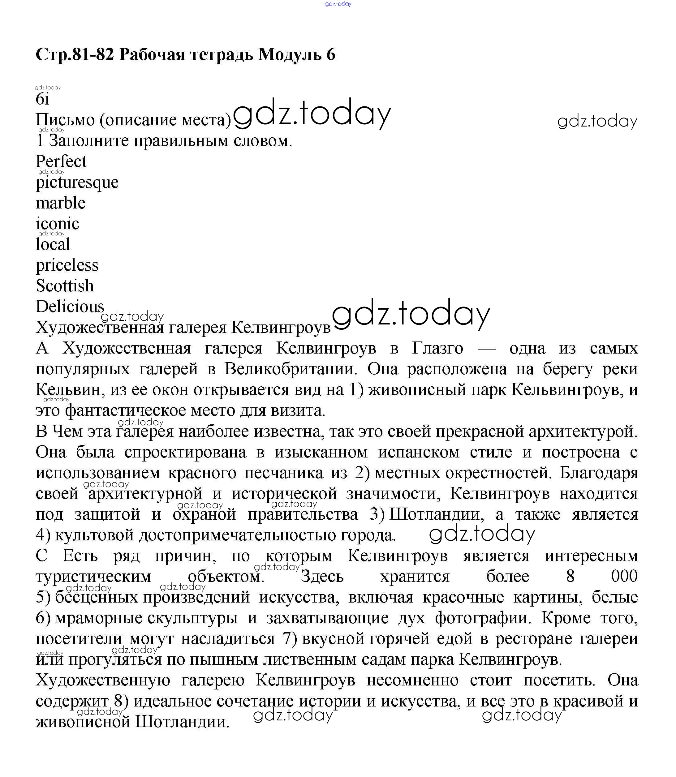 На страницах сайта gdz.today вы найдете учебный и вспомогательный материал, направленный на улучшения знаний школьной программы. ГДЗ - онлайн мир знаний Решение к Module 6 стр.81-82 Рабочей тетради по Английскому языку для 9 класса Баранова, Дули Углубленный уровень Просвещение Starlight 2017