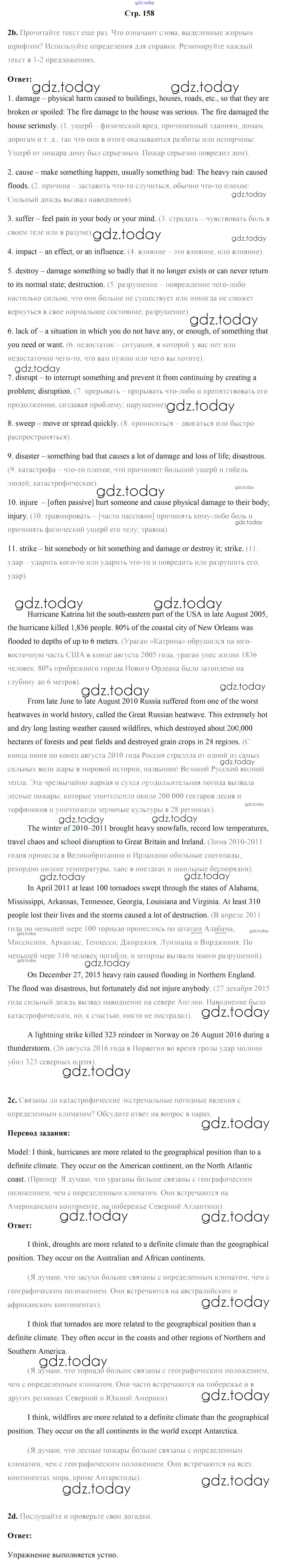 На страницах сайта gdz.today вы найдете учебный и вспомогательный материал, направленный на улучшения знаний школьной программы. ГДЗ - онлайн мир знаний Страницы (решение) 158 Учебнику по Английскому языку для 9 класса Лапицкая, Демченко Высшая школа 2018